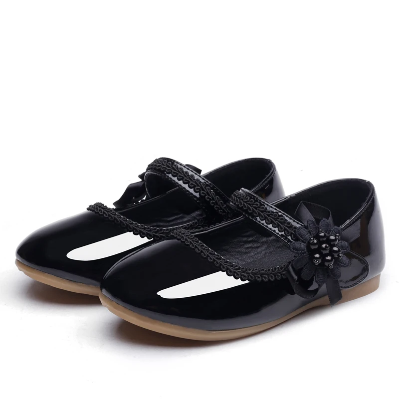 Туфли из лакированной кожи для девочек, однотонная обувь для студентов и выступлений, с бантом, обувь на плоской подошве, SO009, весна