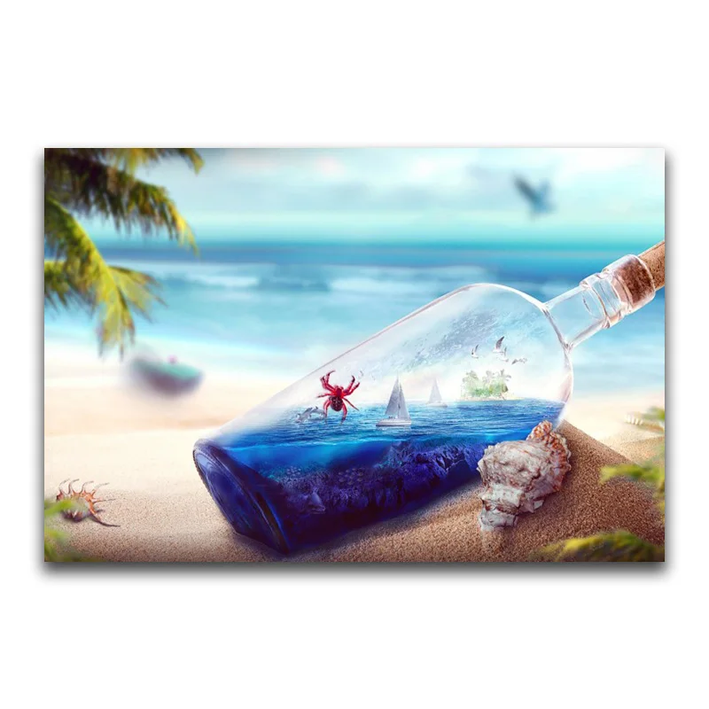 Алмазная вышивка 5D сделай сам, алмазная живопись, рыболовная лодка...