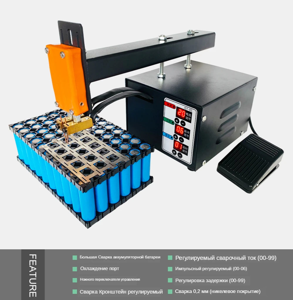 Аккумулятор большой емкости пакет сварки охлаждения порт ножного переключателя управления сварочных Кронштейн регулируемый сварочный ток регулируется (00-99) регулируемый импульса (00-06) регулировка задержки (00-99) сварки 0,2 мм (покрытие никелем)