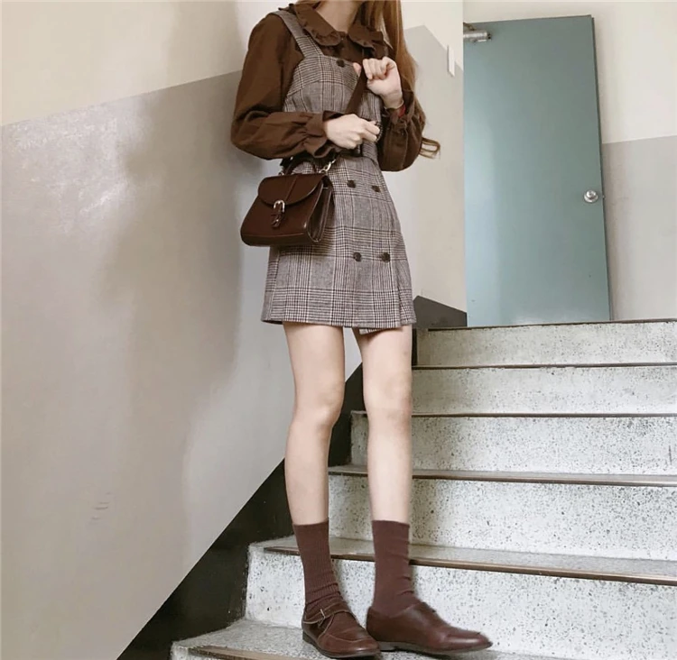 Женский винтажный сарафан, Клетчатая блузка, Женский комплект 2 шт.