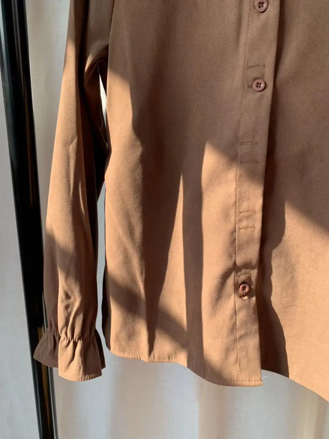 Доставка на мой адрес в Великобританию занимает всего 10 дней. Рубашка довольно светло-коричневого цвета, но очень хорошего качества с довольно толстой подкладкой, поэтому идеально подходит для осени и зимы. Размер точный; Я Британский Размер 6-8, Европейский размер 34-36, и я заказал размер S.