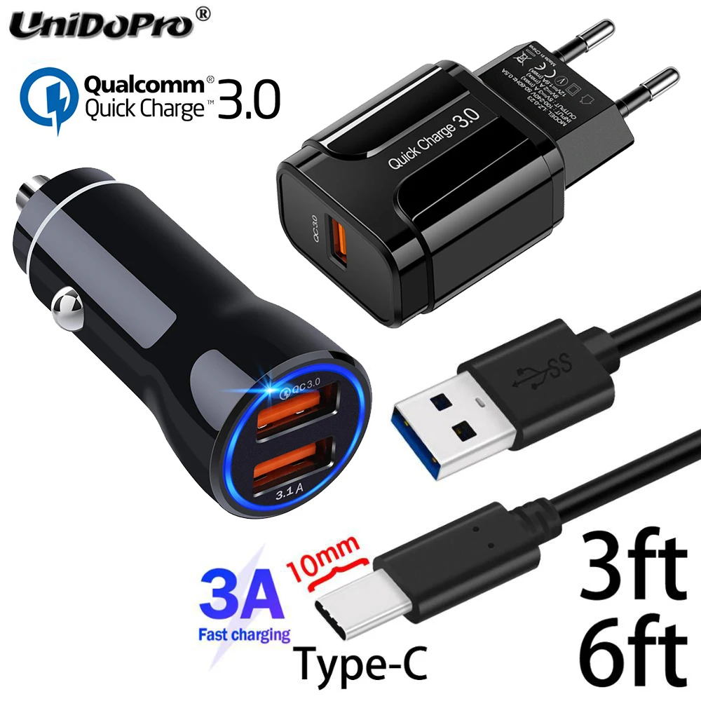 UNIDOPRO QC 3,0 EU AC зарядное устройство, QC 3,0 2USB автомобильное зарядное устройство Adatper с 10 мм расширенным наконечником типа C кабель