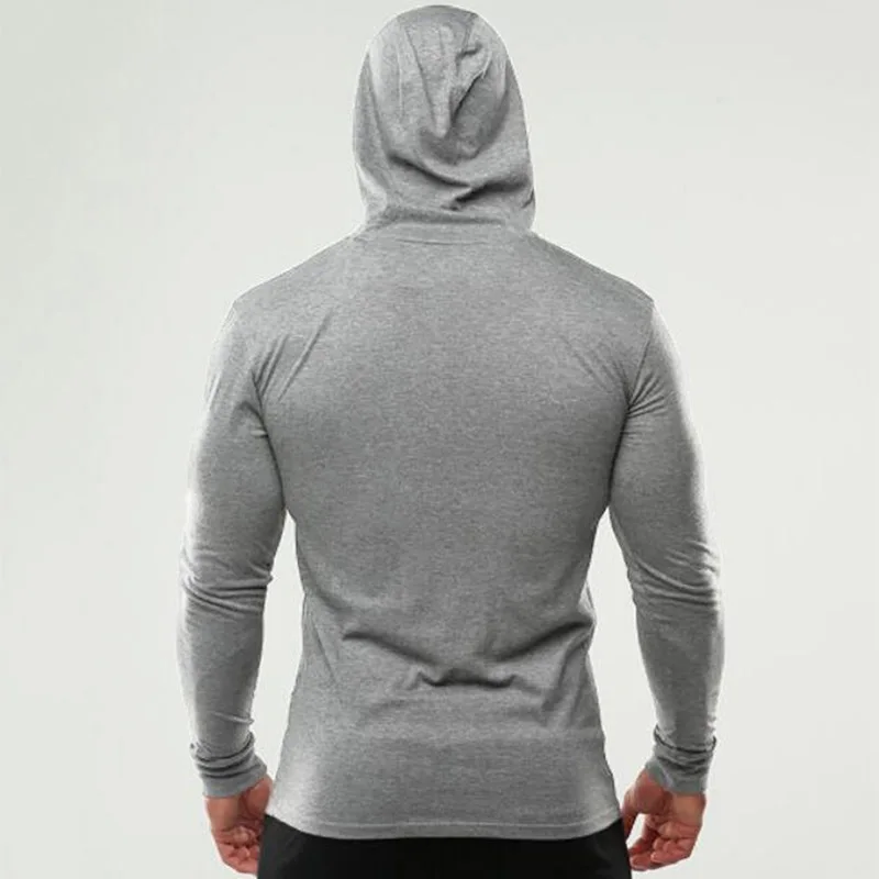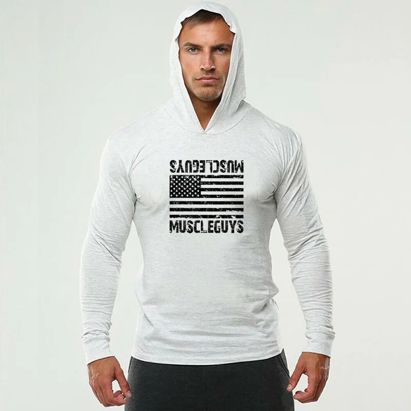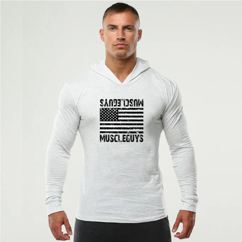 Мужская хлопковая футболка с капюшоном Muscleguys для тренировок, бодибилдинга, бега, фитнеса, футболка с длинным рукавом для мужчин