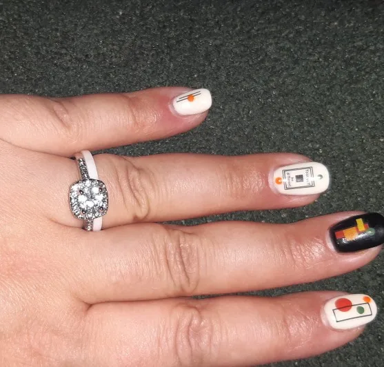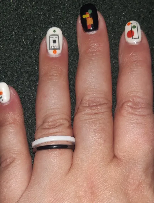 Настроение замечательное. Колечки красивые. Немножко не угадала с размером, но не критично. Заказывала 9 размер на 18-18,5. Поскольку половинок в размерной сетке нет, то решила не рисковать. Если надеть одно кольцо, то свободно, но если сразу 3 кольца, то садятся на палец плотнее. Есть одно но... 9 размер заказала на все кольца ( 2 белых и 2 черных), но белые чуточку больше, чем черные, хотя все с указанием размера 9. Но тем не менее я очень довольна. Спасибо