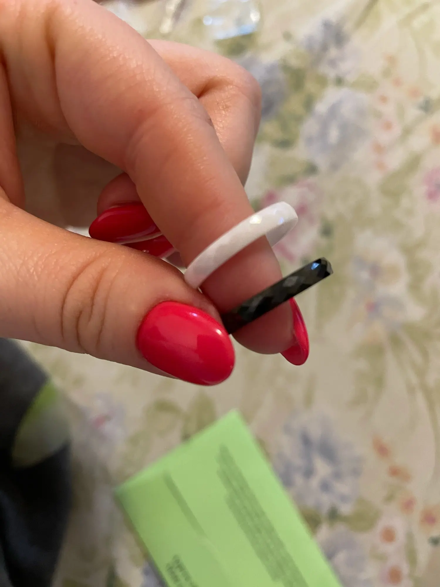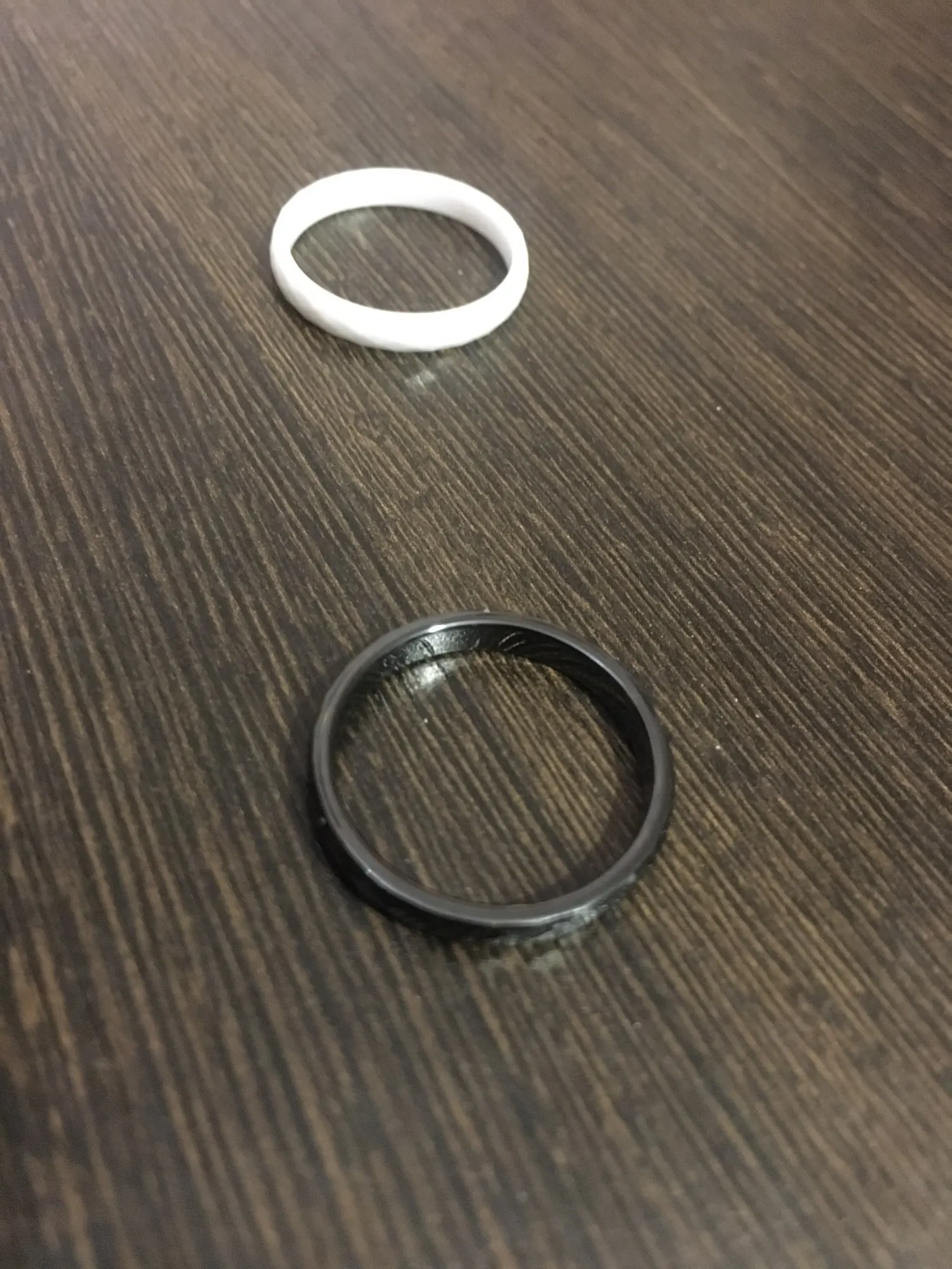 Брала сразу два цвета ,7 на 17 размер отлично подошёл ,заказ пришёл за 25 дней полной отслежкой ,кольца легкие ,если выбирать рекомендовала с гранями бы чёрный цвет ,больше бликуют ,на белом не так видно !