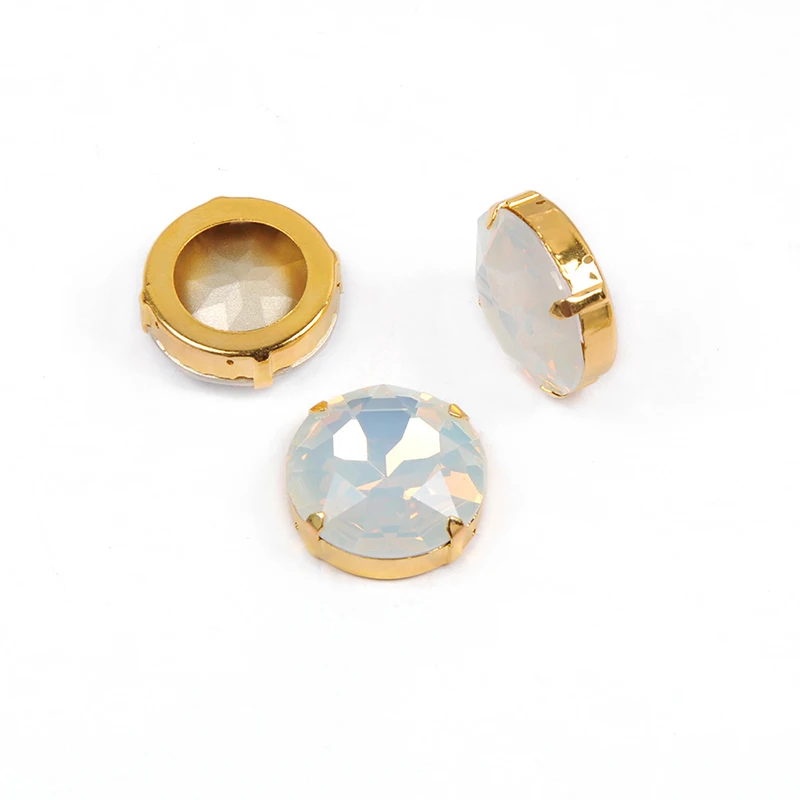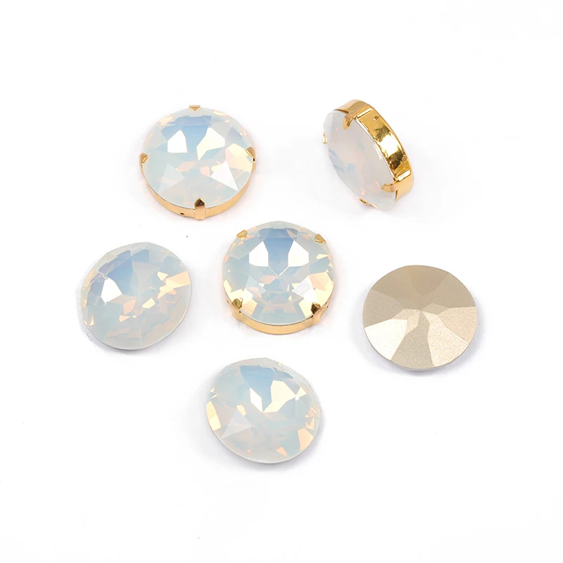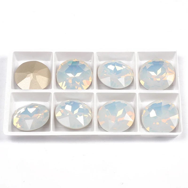 YANRUO 1201 27 мм белый опал круглые Пришивные хрустальные стразы стеклянные стразы Остроконечные камни для украшения одежды
