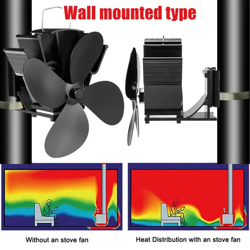 7-дюймовая 4-лопастная настенная Настенная подсветка, деревянная горелка, экологичный тихий вентилятор, домашнее эффективное распределение тепла