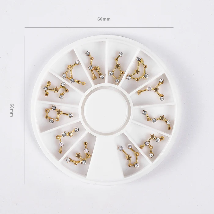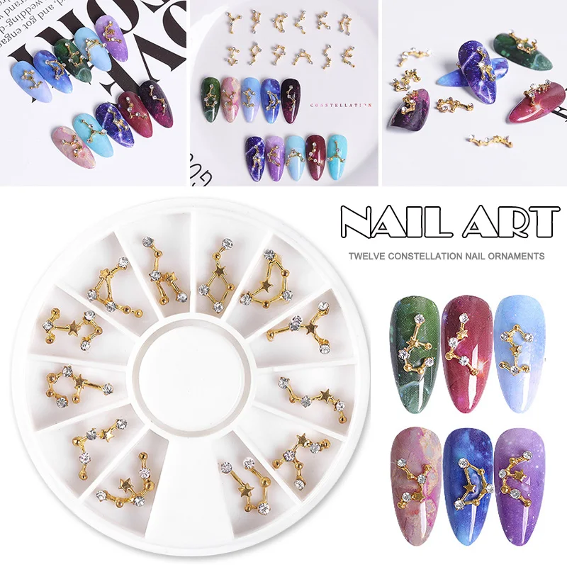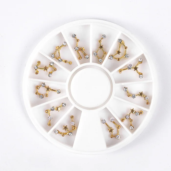 12 созвездий 3D сплав золотые стразы для дизайна ногтей камни украшения для ногтей в колесах аксессуары для самостоятельного маникюра