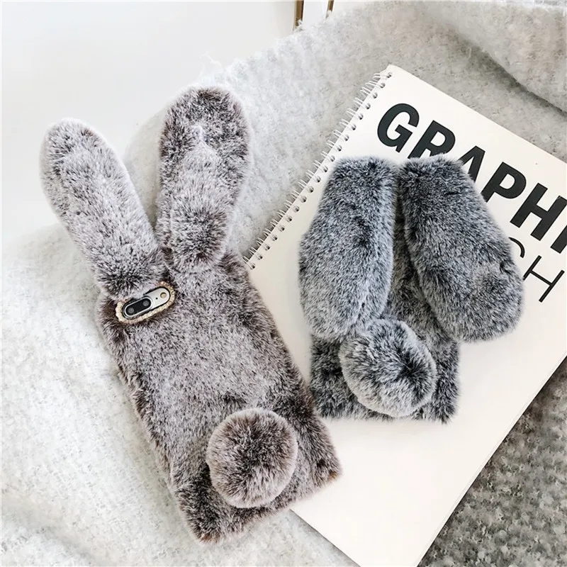 Милый пушистый чехол с кроликом для Huawei P30 lite P8 P9 P10 honor...