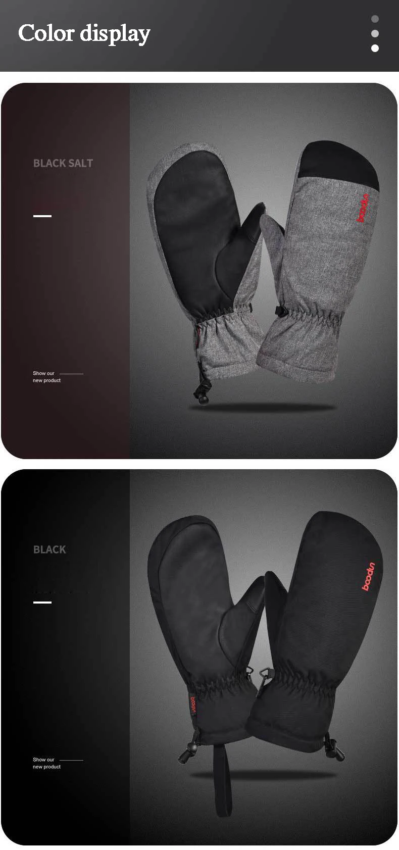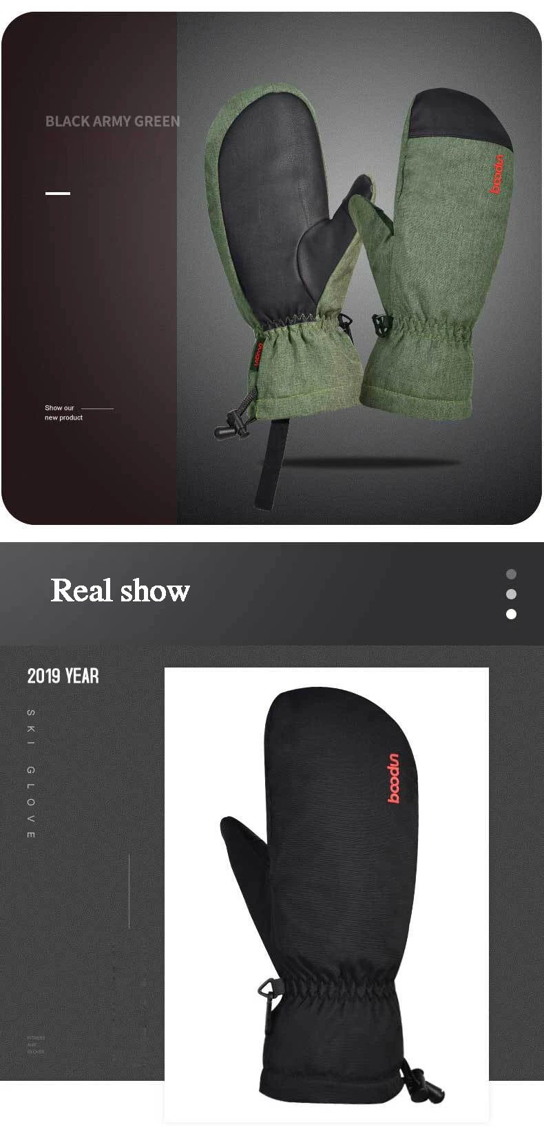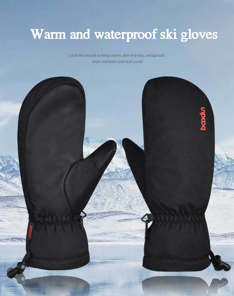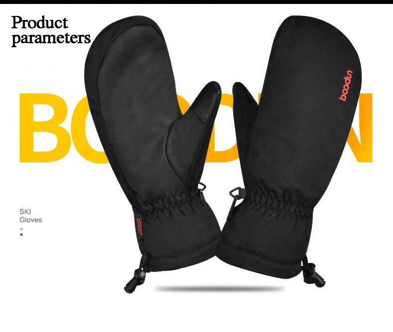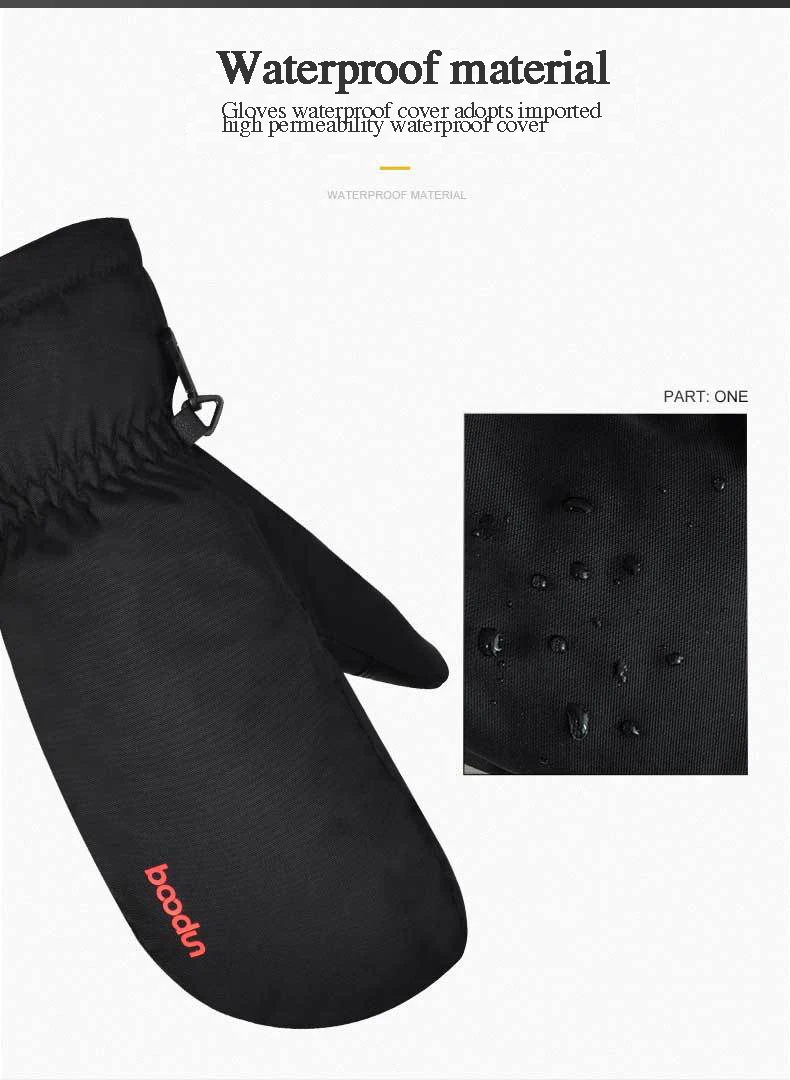 Зимние лыжные перчатки Boodun для мужчин и женщин, ветрозащитные водонепроницаемые перчатки для сноуборда и катания на лыжах, теплые флисовые перчатки из искусственной кожи