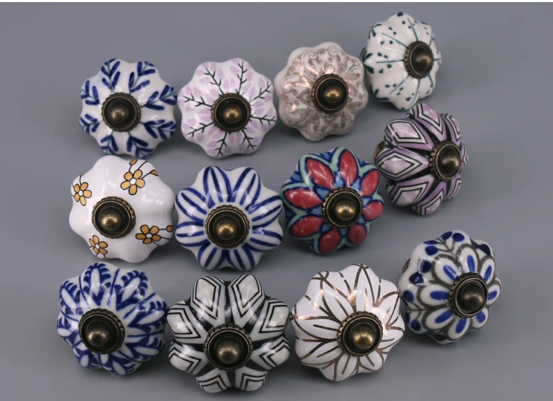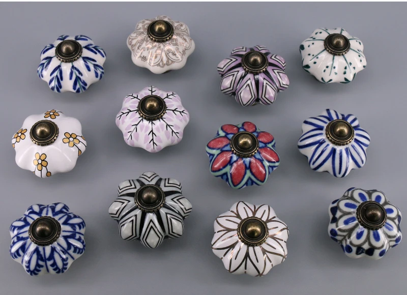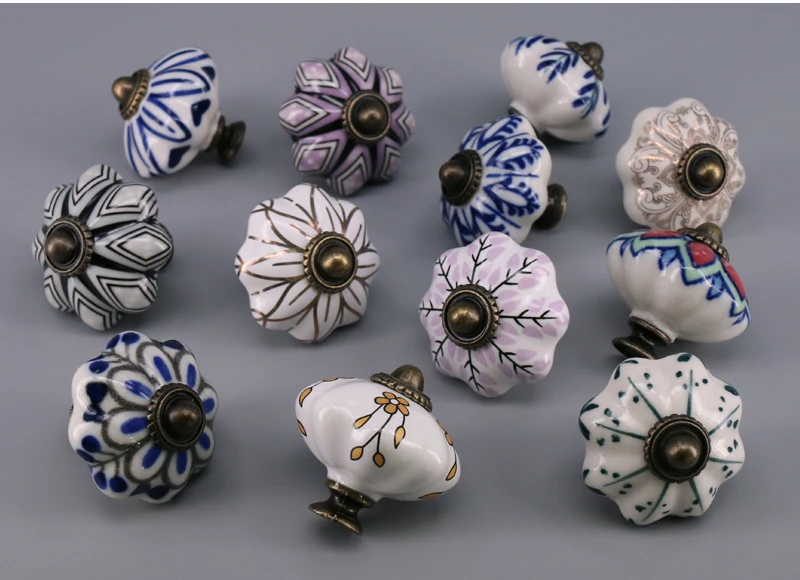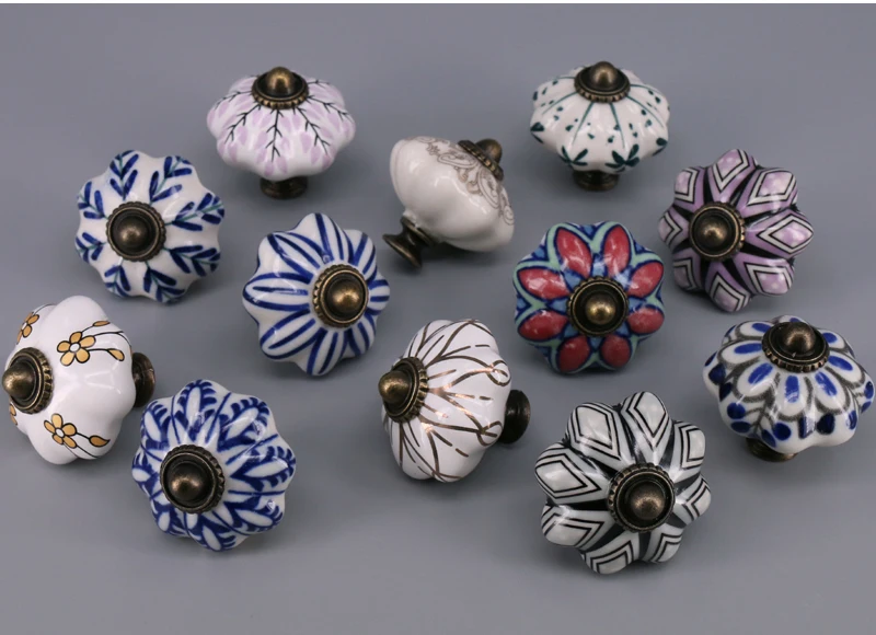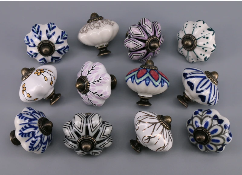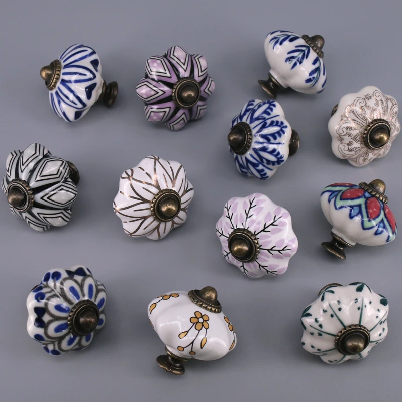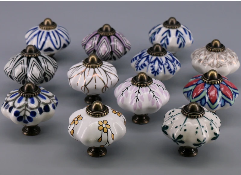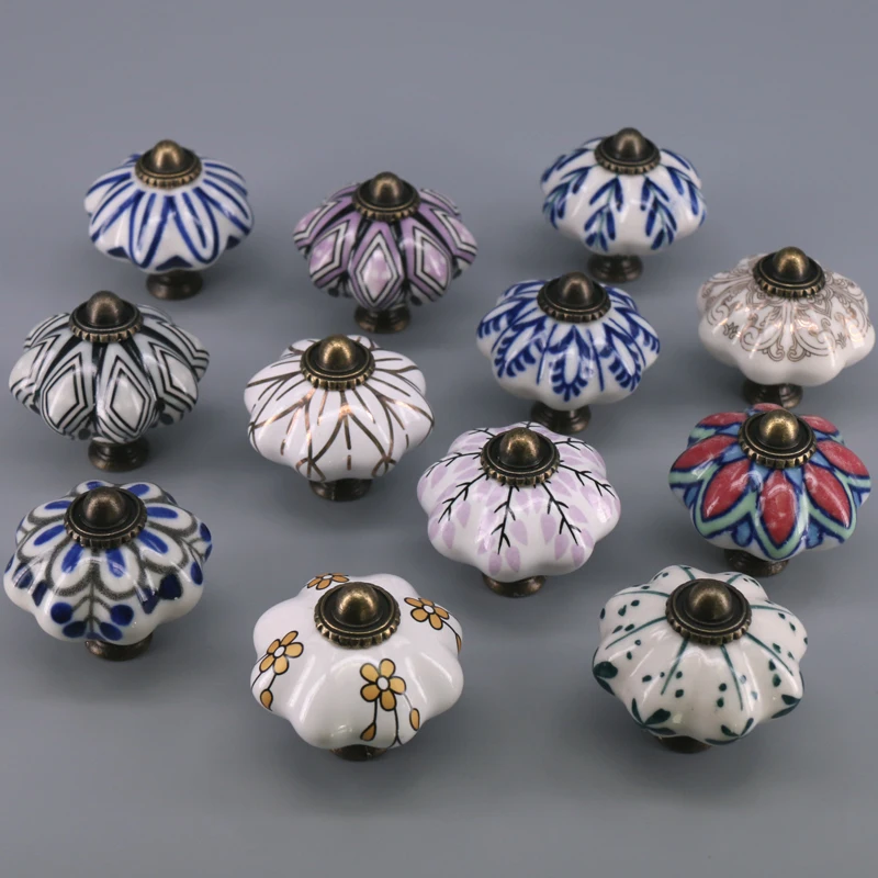 Выдвижной ящик с уникальным принтом, 1 шт., керамические ручки для шкафчиков, Винтаж, ручка в виде тыквы, выдвижная ручка для кухонного шкафа, для дверей шкафа