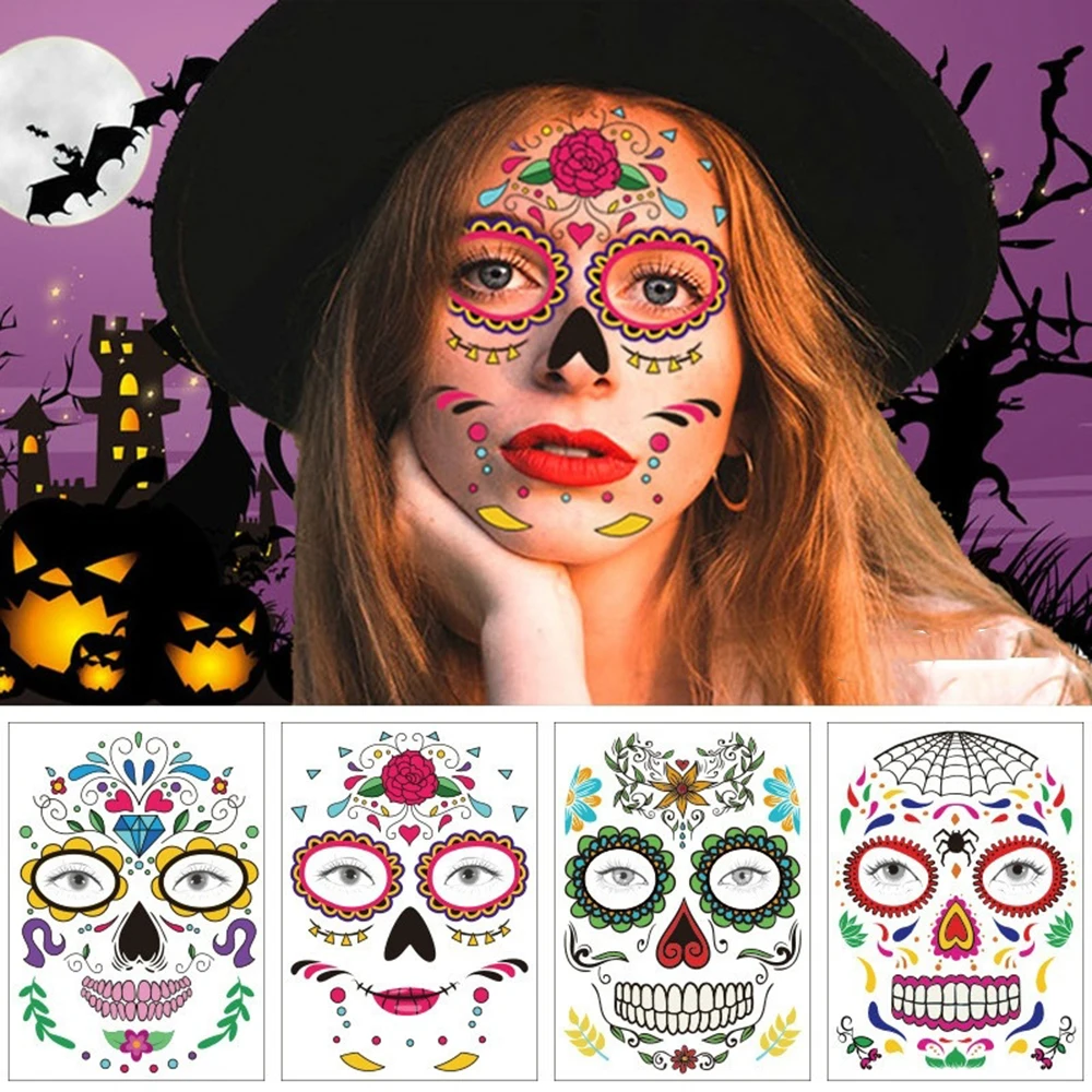 1 шт., хит продаж, специальные водонепроницаемые наклейки с черепом на лицо, Хэллоуин, Временные татуировки, День мертвых, одеваются, наклейка на лицо, макияж для лица