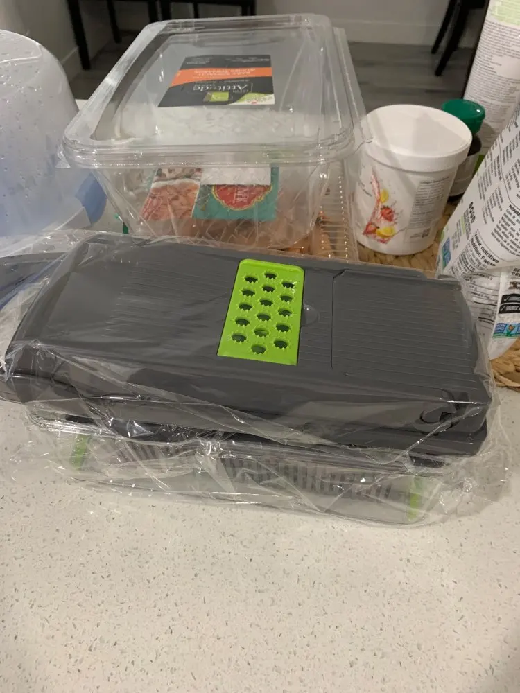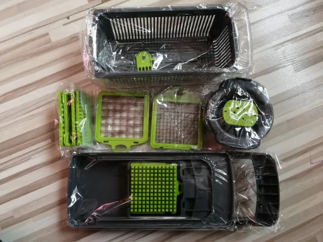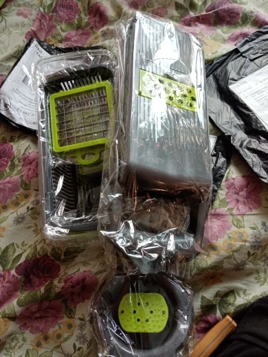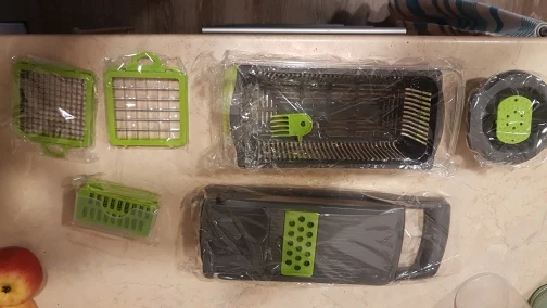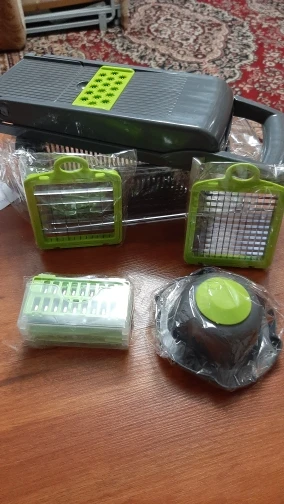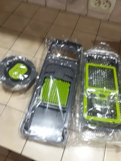 Товар пришел в целости, в комплекте. Все насадки ещё не опробовали, но капусту, морковь и помидоры шинкует и нарезает хорошо!