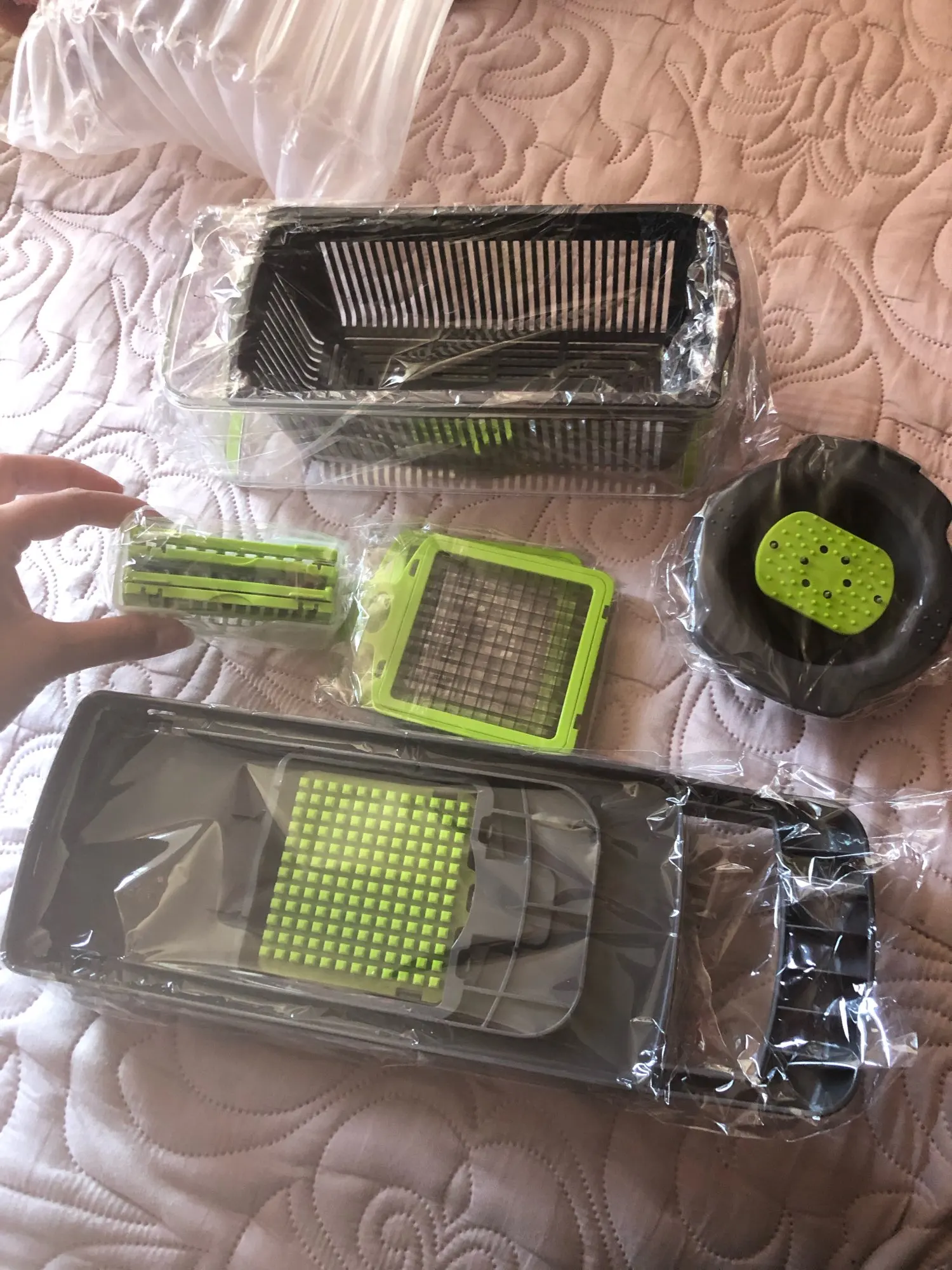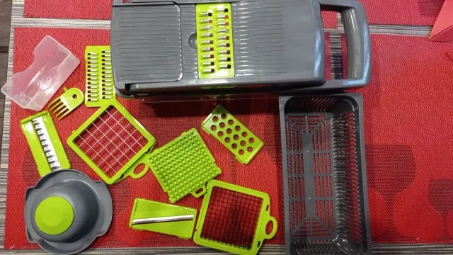 отличная овощерезка, все как в описании, доставка через Пятёрочку за неделю до Питера, особенно нравятся лезвия для резки кубиками. теперь винегрет или оливье за 10 минут. супер, рекомендую.