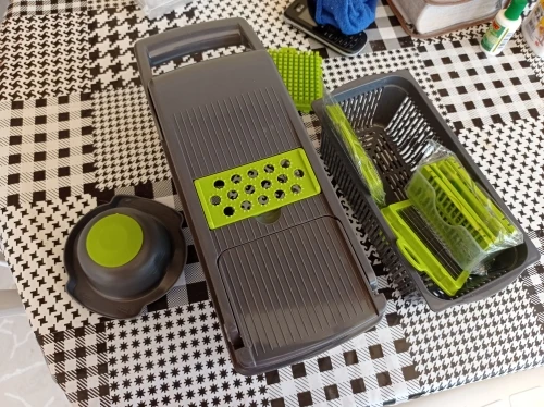 Доставка очень быстрая, отличный продукт, я настоятельно рекомендую продукт, он прост в использовании и очень удобный, он помогает мне быстро резать овощи и фрукты, они выглядят очень хорошо. Легко чистить.