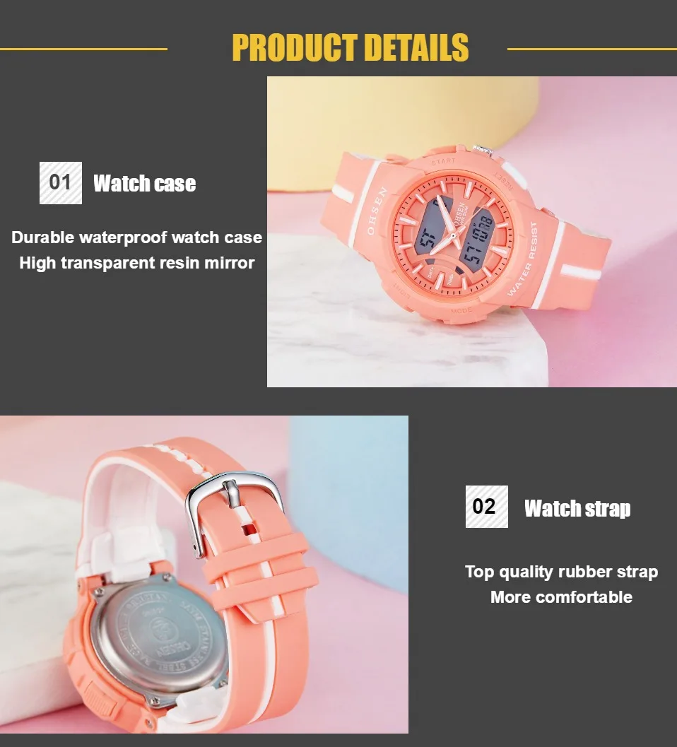 Японская кнопочная ячейка Maxell, задняя крышка из нержавеющей стали с 3D логотипом OHSENКачественный резиновый ремешок, более удобный