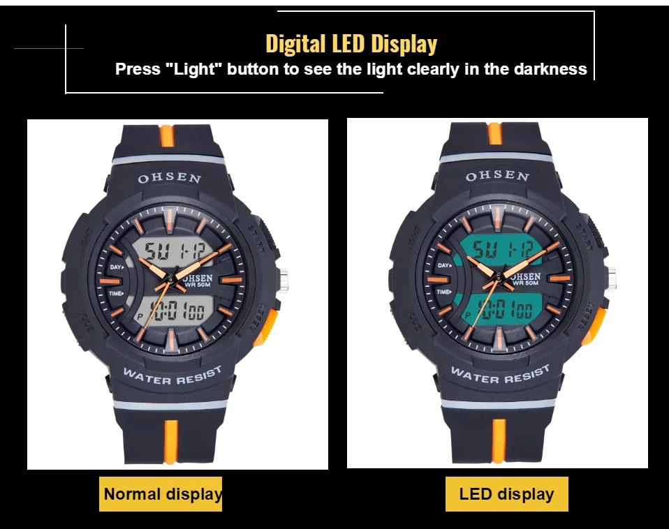 Отображение двух часовых поясовЦифровой: часы, минуты, секунды, pm, месяц, дата, день12/24 часовой формат будильника и функция ежечасного звонкаСпециальный дизайн с хронографом (секундомером) с шагом 0,01 секундВодонепроницаемость до 50 м (не нажимайте кнопки в воде)Дополнительная функция подсветки ЖК-дисплея для четкого отображения времени в темноте