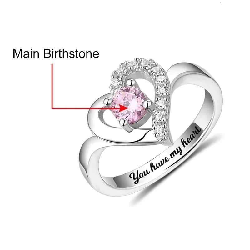 Xiaojing 100% 925 пробы Серебряное персонализированное классическое кольцо в форме сердца с гравировкой Кольцо по месяцу рождения подарок на день матери Бесплатная доставка