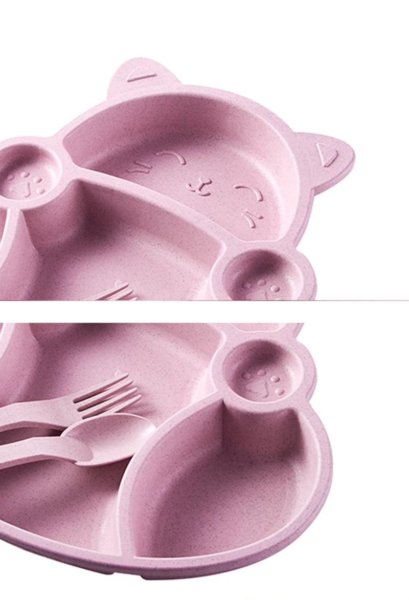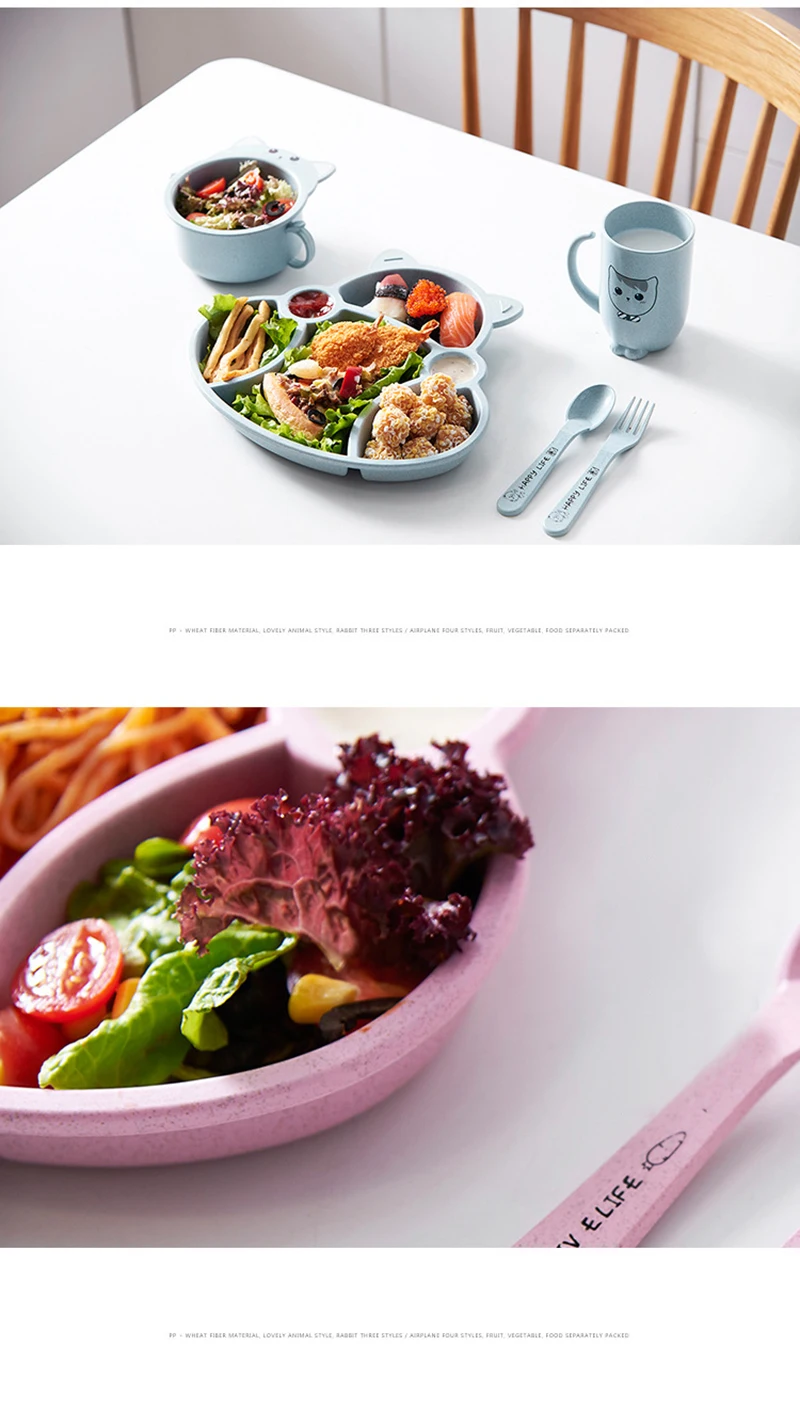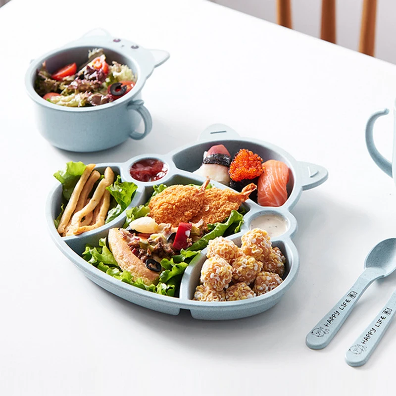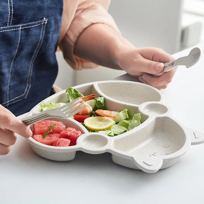 Набор посуды для малышей из мультфильма "Ланч-бокс" Детские дети Лапша Чаша для кормления рисом Пластиковая бамбуковая закуска из волокон Разделенная тарелка Посуда