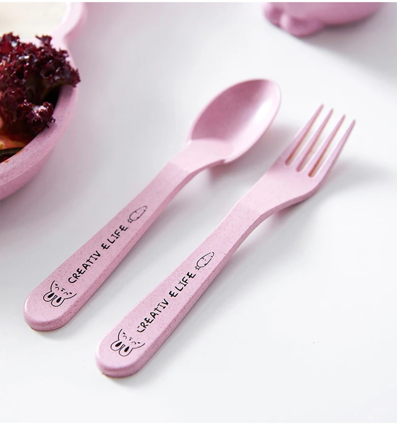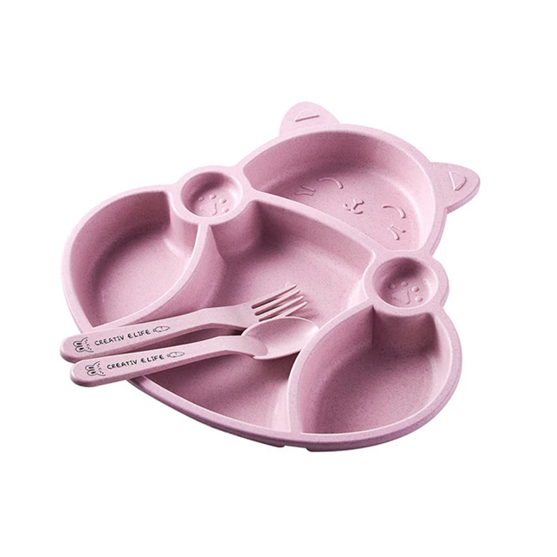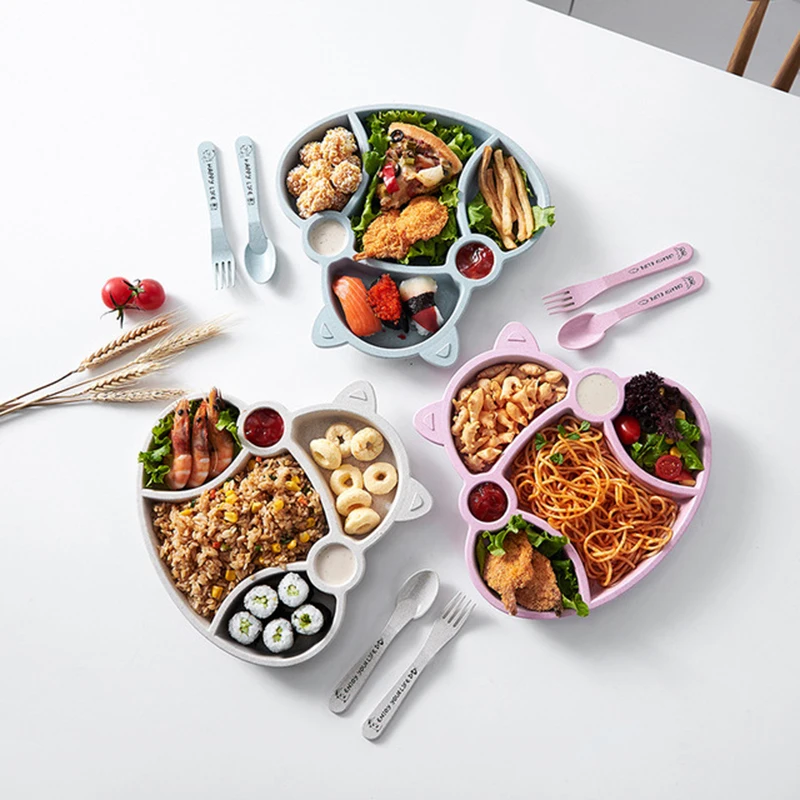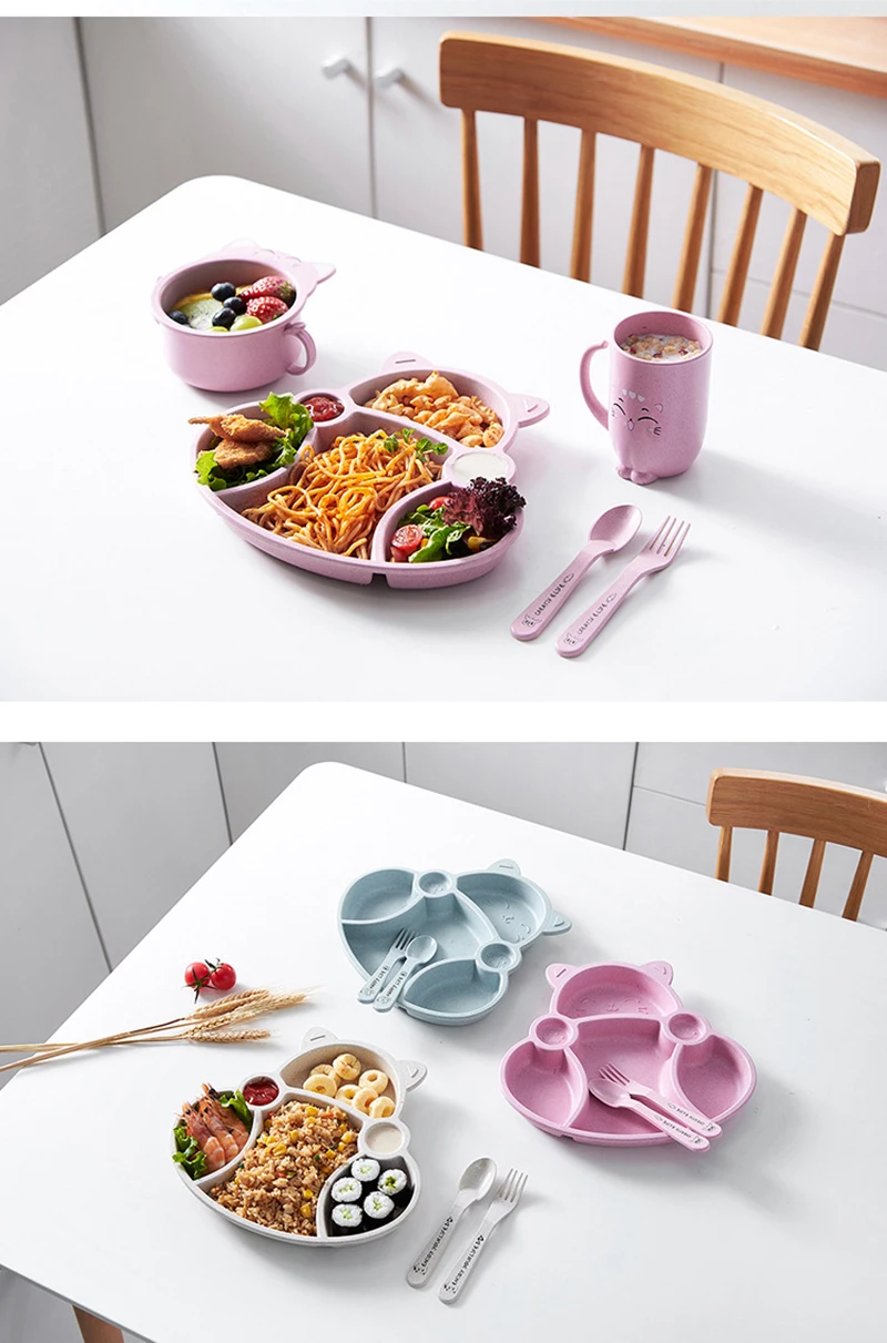Набор посуды для малышей из мультфильма "Ланч-бокс" Детские дети Лапша Чаша для кормления рисом Пластиковая бамбуковая закуска из волокон Разделенная тарелка Посуда