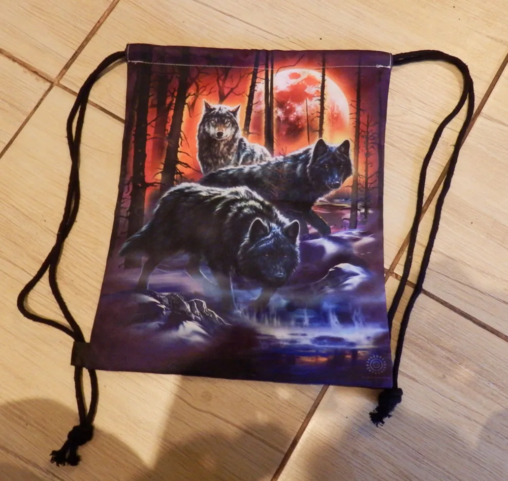 Зимняя сумка на шнурке с воющим принтом волка, мужские сумки для хр...