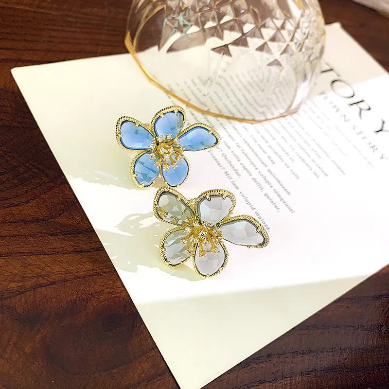 Кольцо USTAR женское, с большим синим кристаллом, в форме цветка