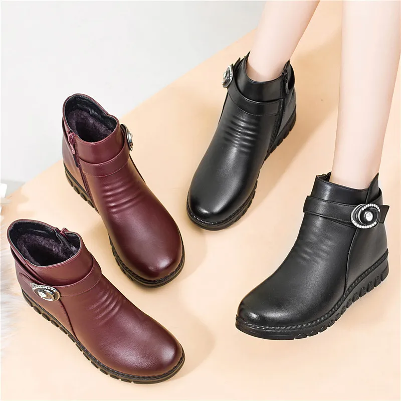 Ботинки женские зимние из натуральной кожи, на нескользящей подошве