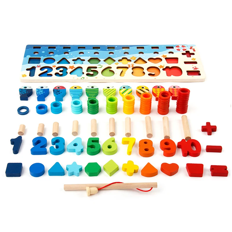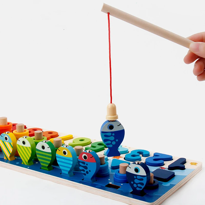 Деревянные развивающие игрушки Монтессори для детей, доска, математическое число рыболовных счетчиков, подходящая Цифровая форма, подходящая игрушка для раннего развития