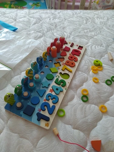 Отличная игрушка, ребенку очень понравилась (что редкость). Из минусов могу отметить только то, что столбики на которые надеваются колечки стоят не плотно в своих углублениях.