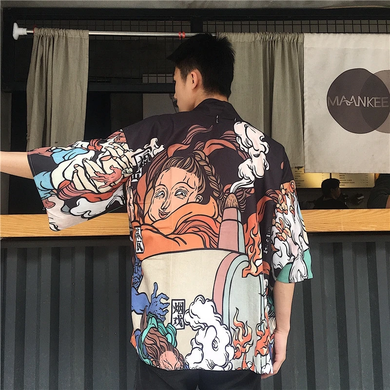 Кимоно мужское традиционное японское кимоно мужское, кардиган в стиле Харадзюку, уличная одежда костюм самурая yukata haori obi KK0001