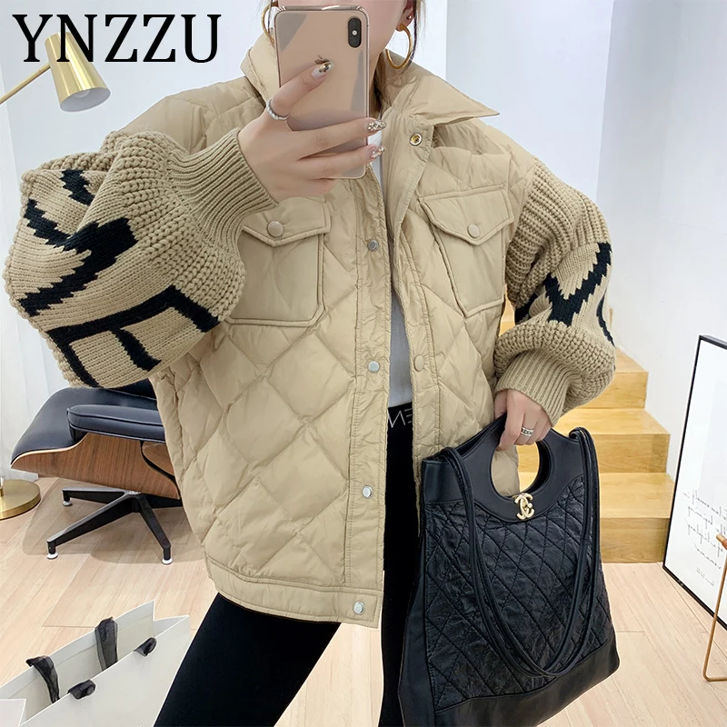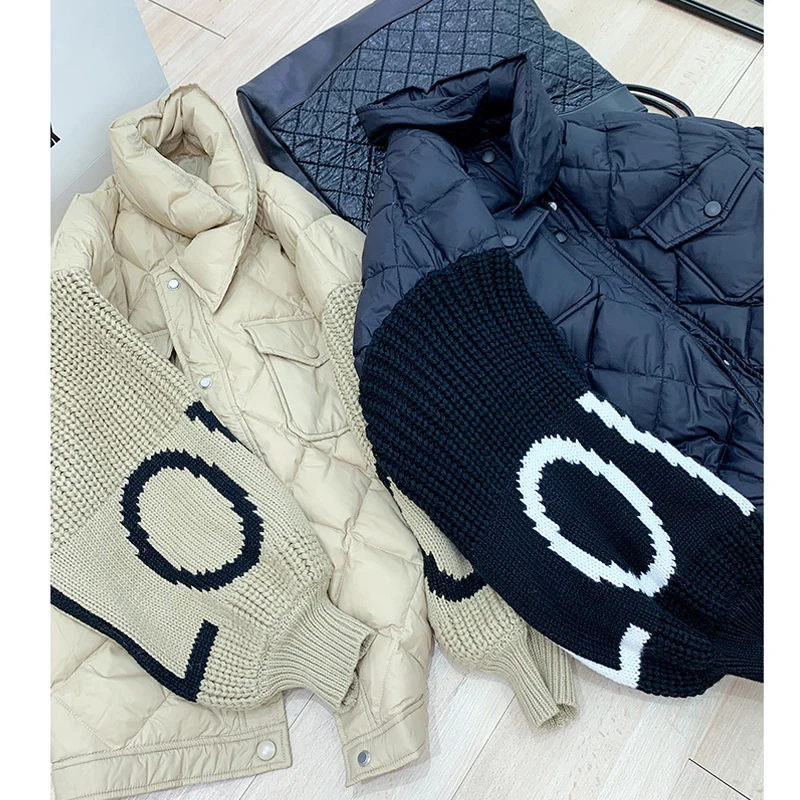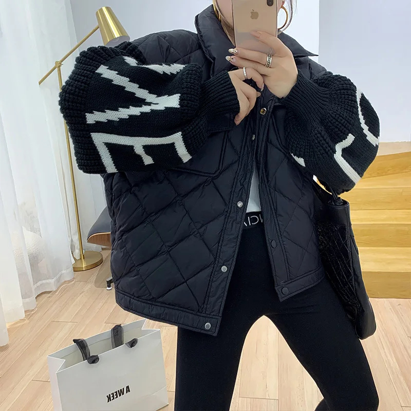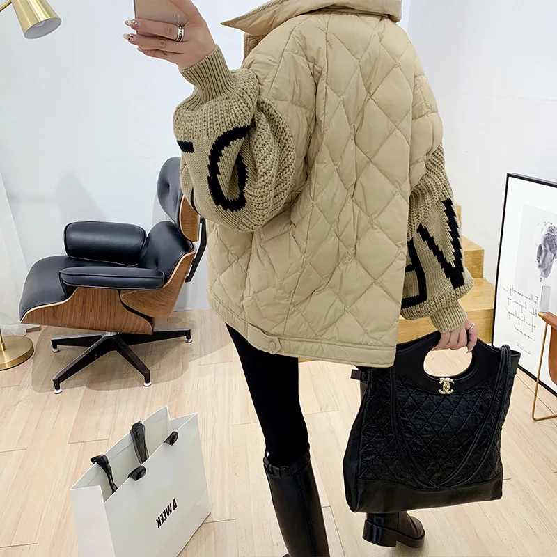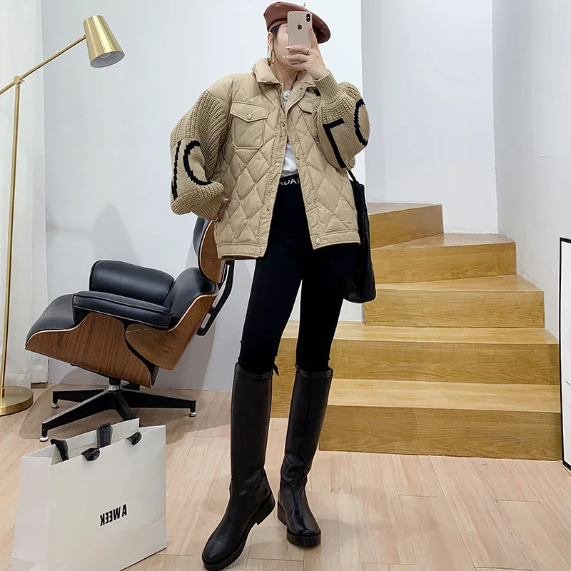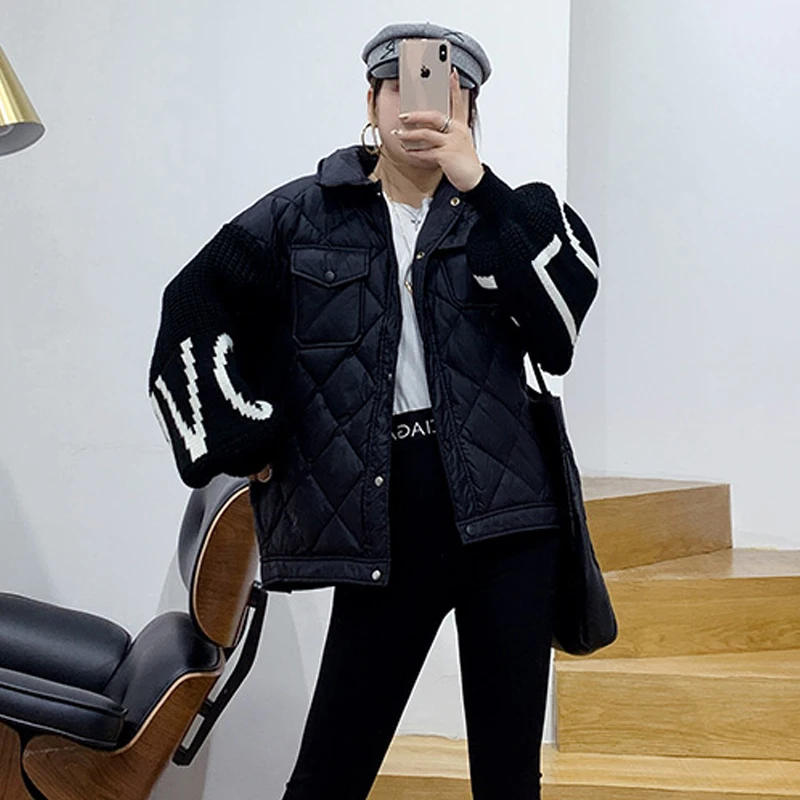 Пуховик женский зимний трикотажный, с рукавами-фонариками, в Корейском стиле, A1363, 2019