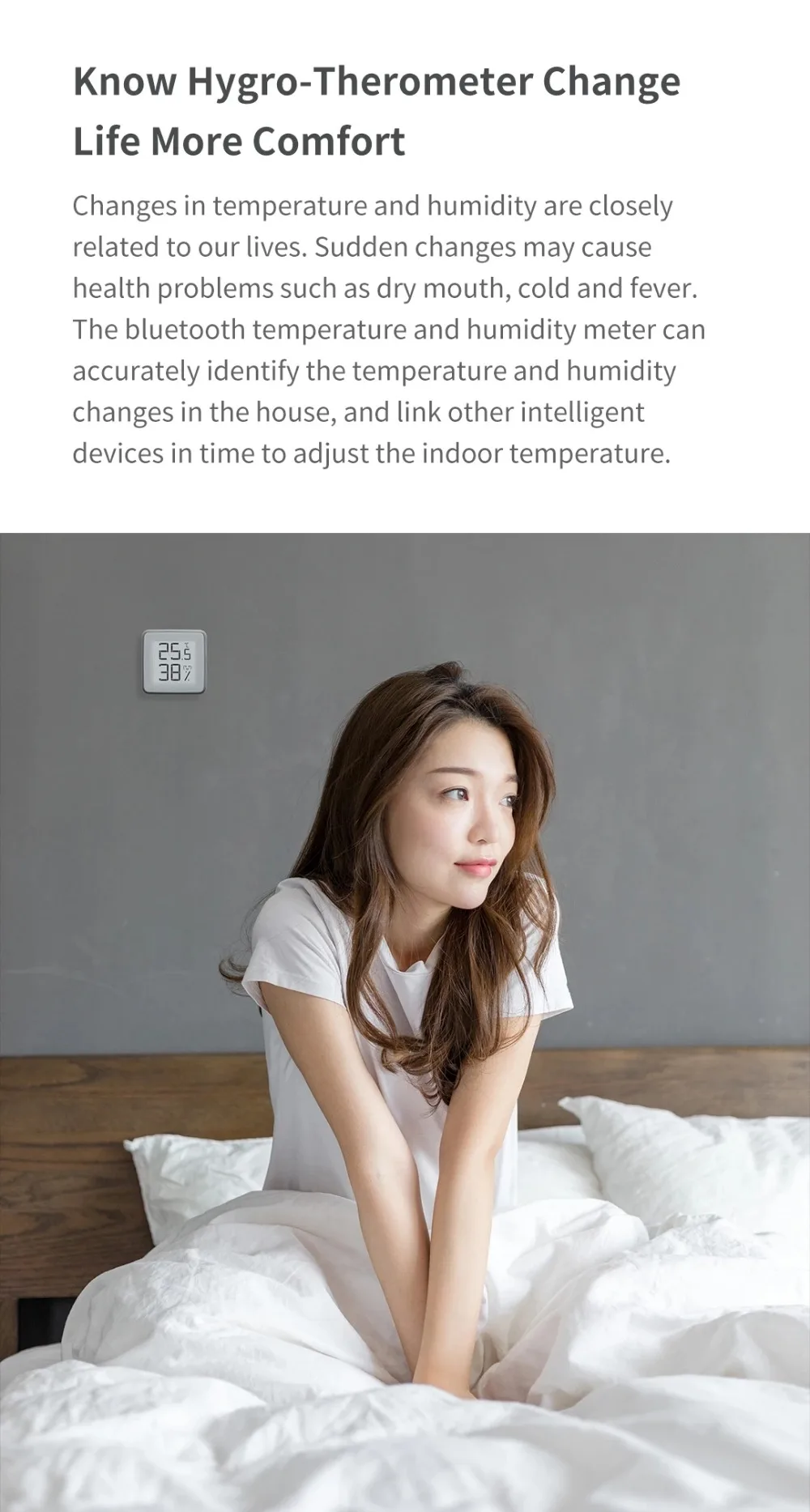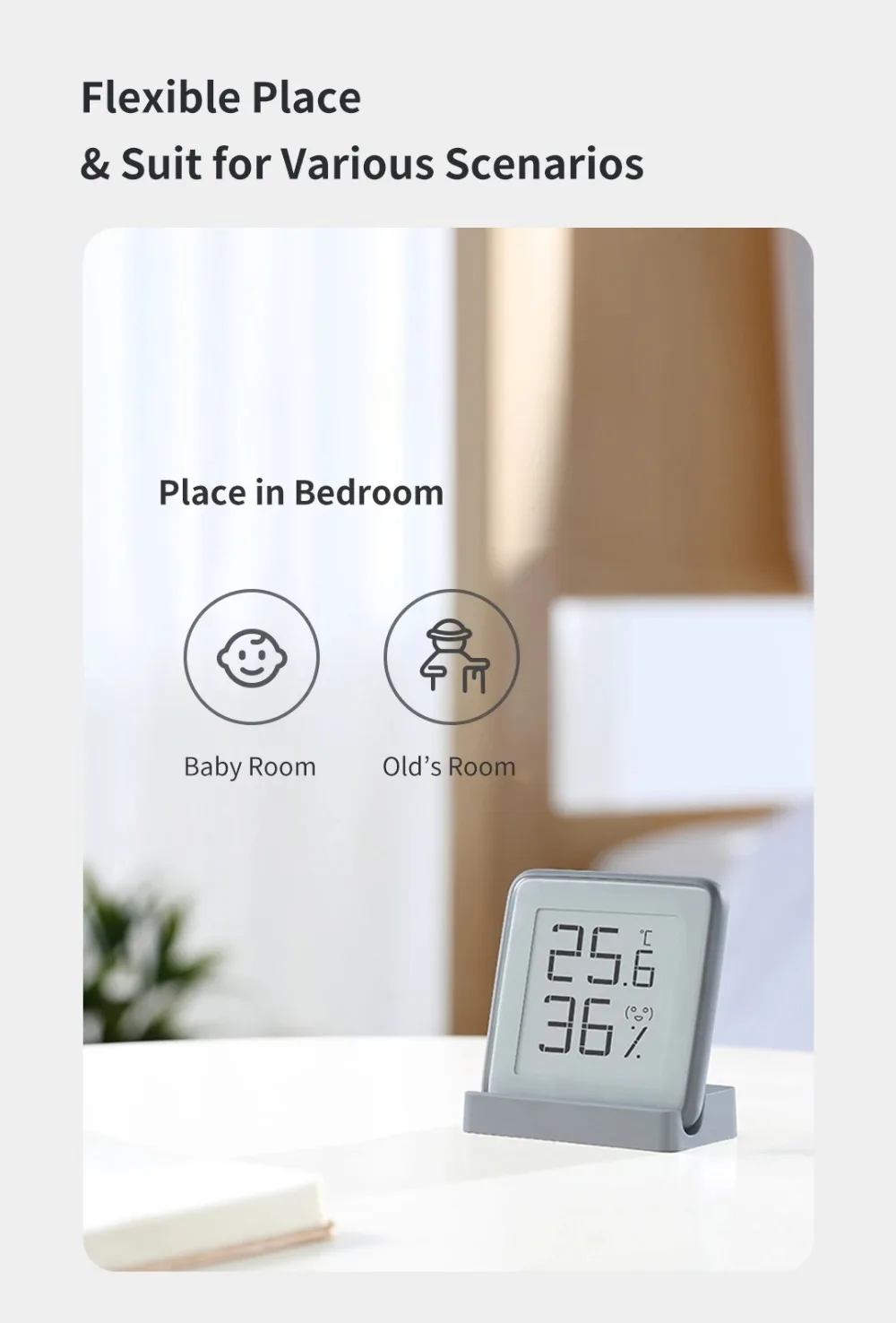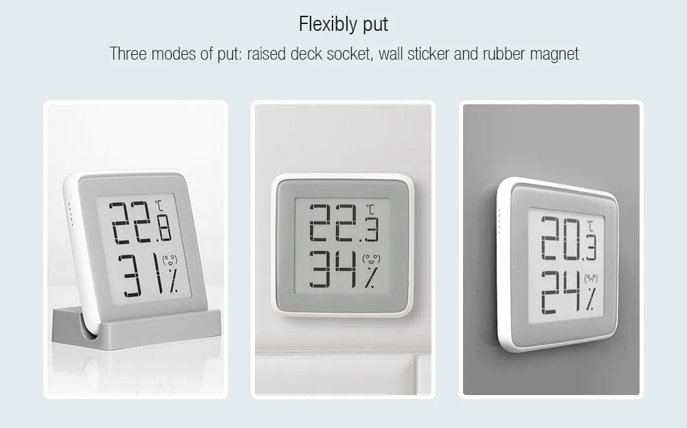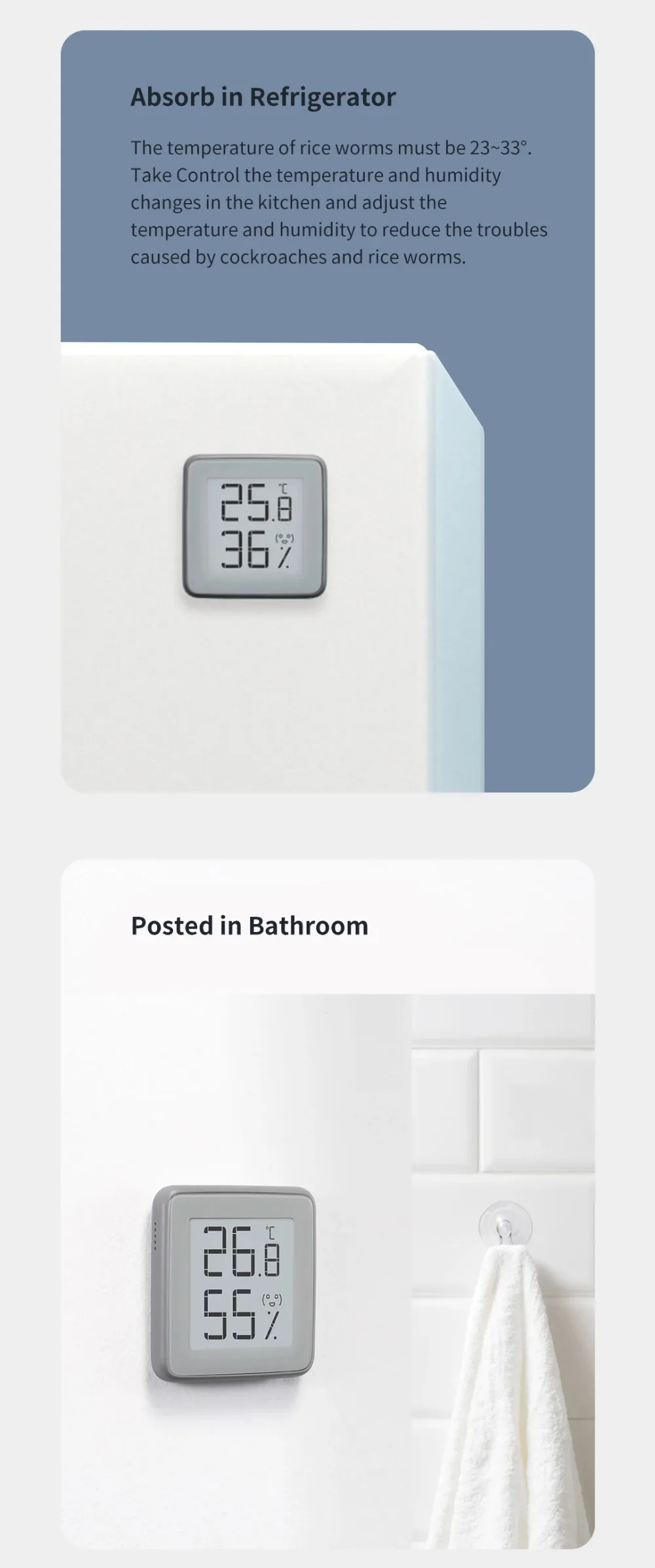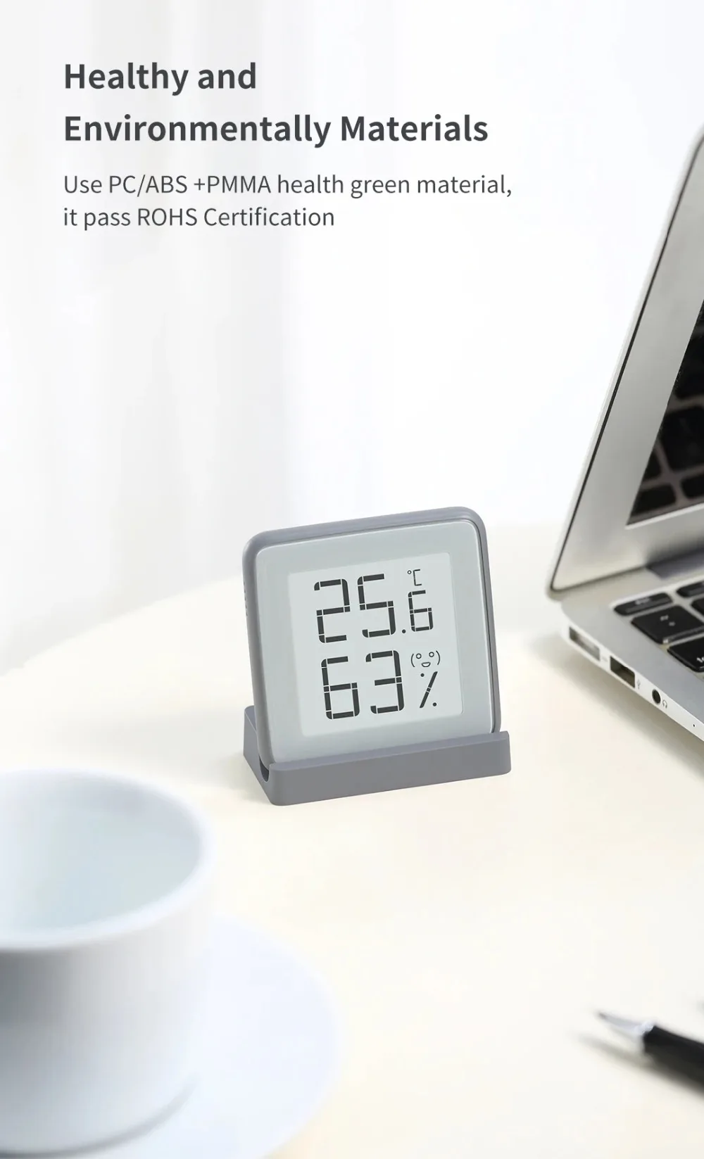 -Запись ежедневной истории температуры и влажности-Технология E-ink и дружественный дисплей смайликов-Работает с приложением for mihome