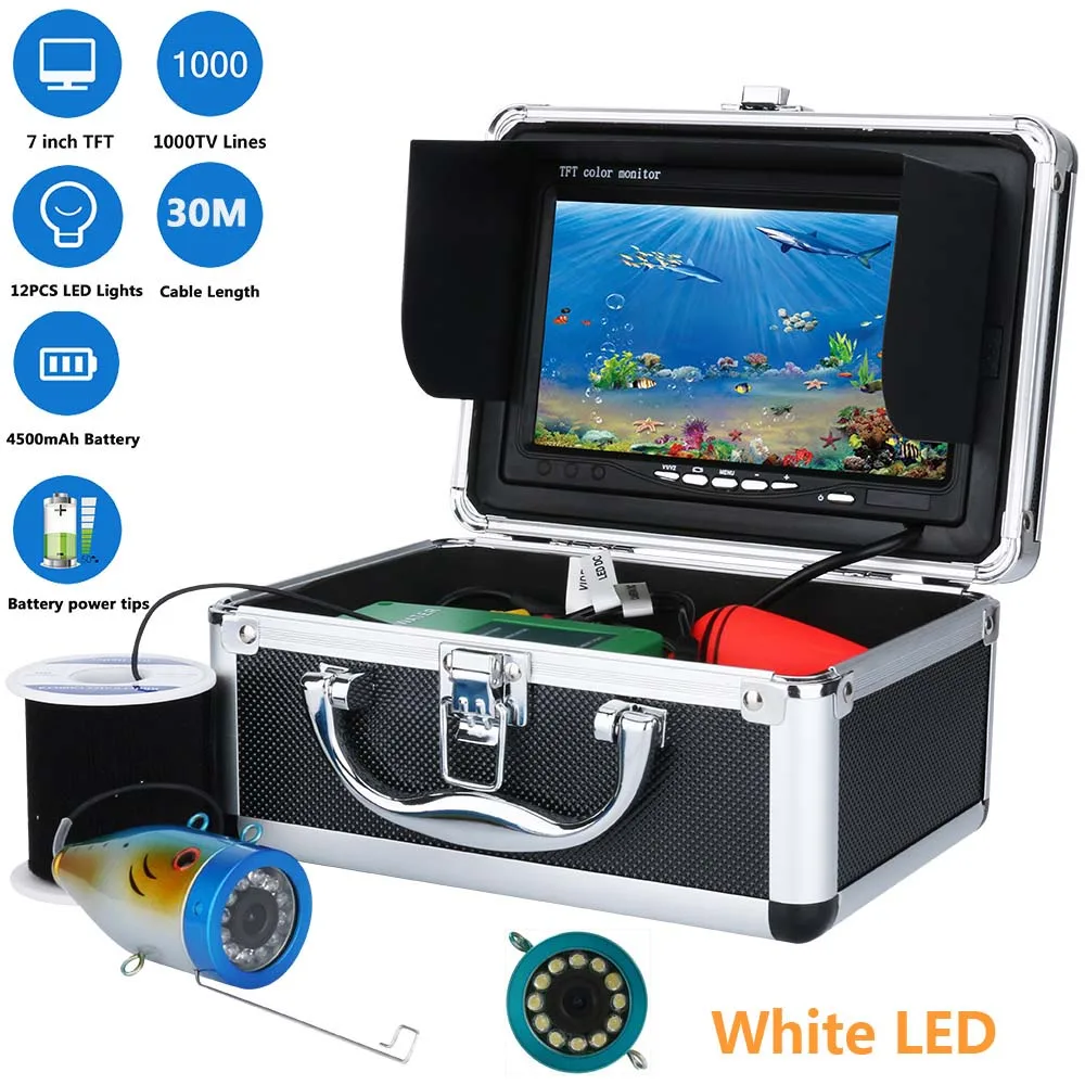 10 м, 20 м, 30 м, 7 дюймов, 1000tvl, подводная рыболовная видеокамера, комплект, 12 шт., светодиодный светильник белого цвета, видео, рыболокатор, озеро под водой, рыбокамера