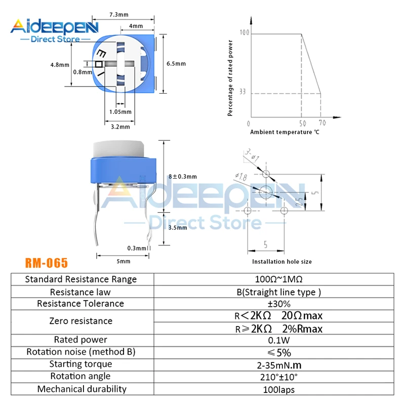 10 шт.лот RM065 100 200 500 Ом 1 к 2 к 2,2 К 3 к 3,3 к 5 к 10 к 20 к 50 к 100 к 200 к 500 к 1 м ом регулируемый резистор для триммера