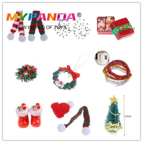 Рождественские огни Подарочная коробка модель с ботинок для конфет дерево венок Сосна капля Санта Клаус шляпа Декор кукольный домик Миниатюрные аксессуары