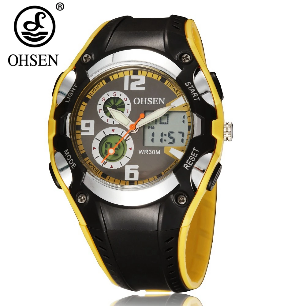 Цифровые кварцевые женские наручные часы OHSEN, модные желтые силиконовые женские часы с будильником и датой, водонепроницаемые спортивные аналоговые часы для активного отдыха