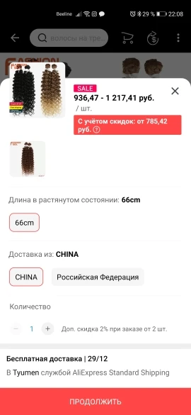 Страна: RU Color: #6 Stretched Length: 26inches Ships From: Russian Federation Доставка: CN_OVERSEA_GD_RU 12.12.2020