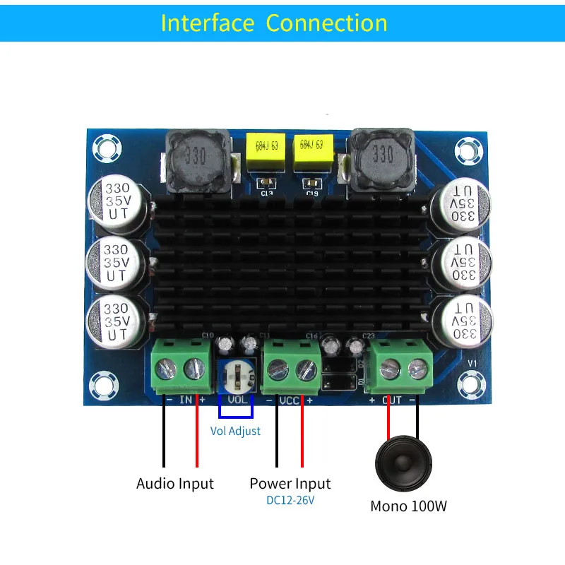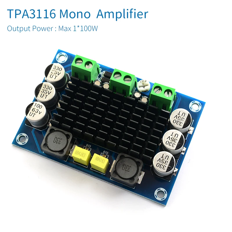 Плата цифрового усилителя UNISIAN TPA3116 Auido, моноканальный усилитель мощности 100 Вт для динамиков 12-26 В постоянного тока