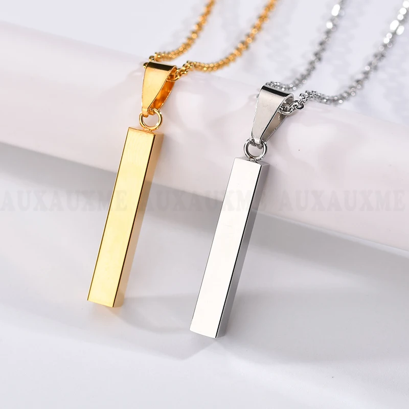 Auxauxme, четыре стороны, гравировка, персонализированная квадратная планка, пользовательское имя, ожерелье из нержавеющей стали, ожерелья для женщин/мужчин, рождественский подарок