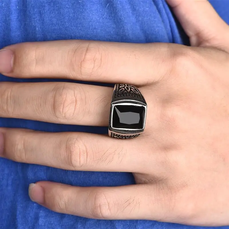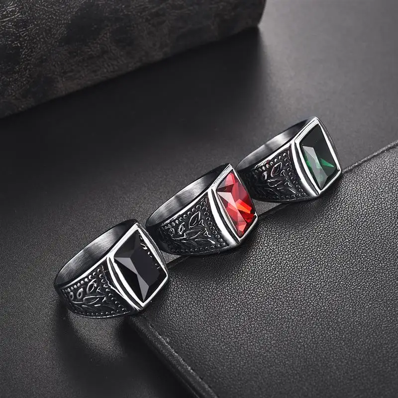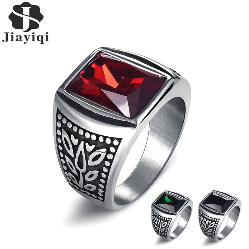 Мужские кольца Jiayiqi, из титановой нержавеющей стали, с квадратным цирконием, винтажные, ювелирные украшения для пальцев, Anel, мужское кольцо с камнем