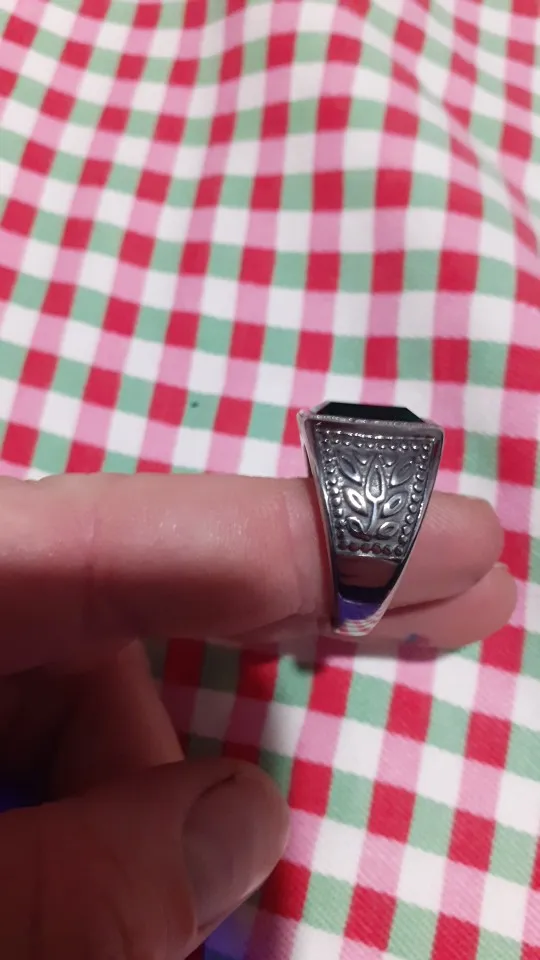 Кольцо шикарное. Сыну очень понравилось. Но большемерит на 2 размера. Вместо 11 надо брать 9 (проверила по другим кольцам с Али)