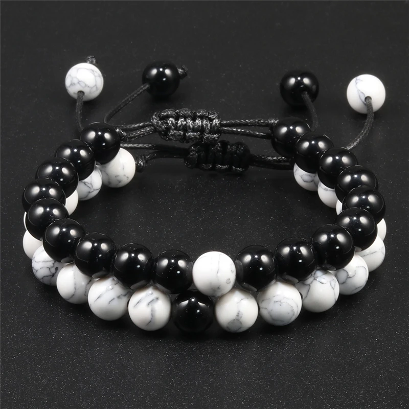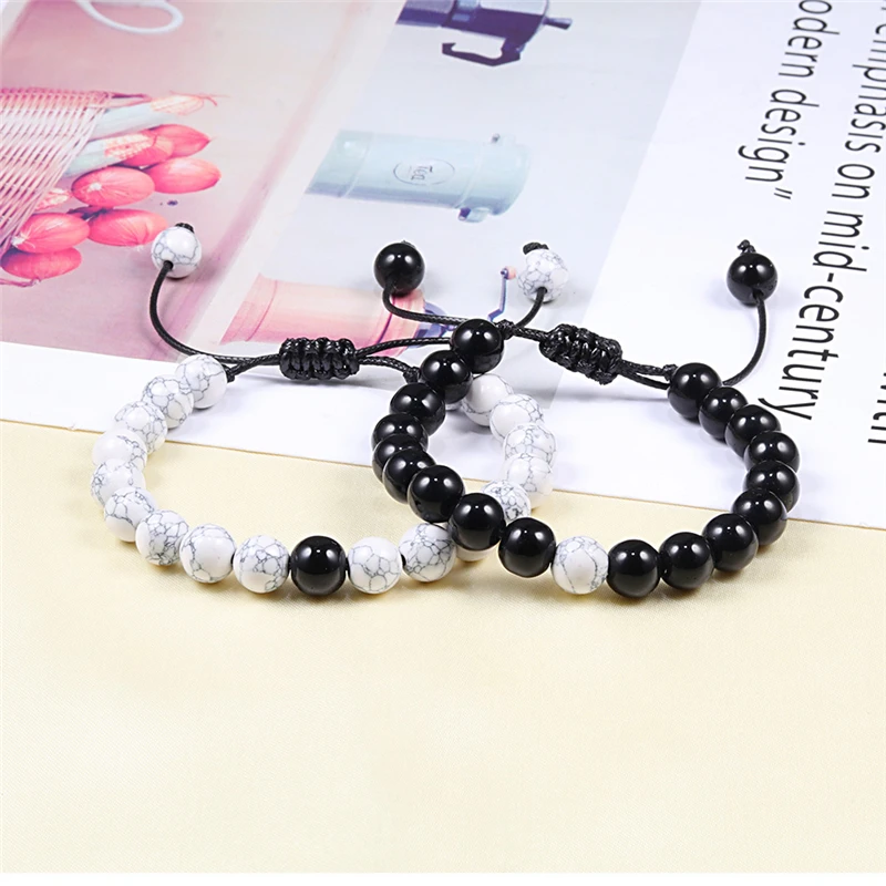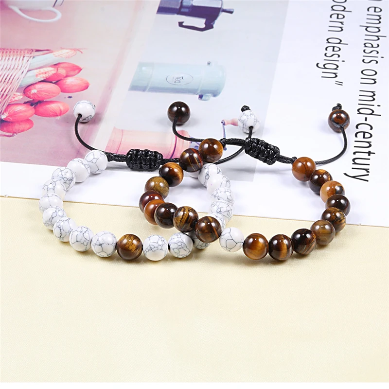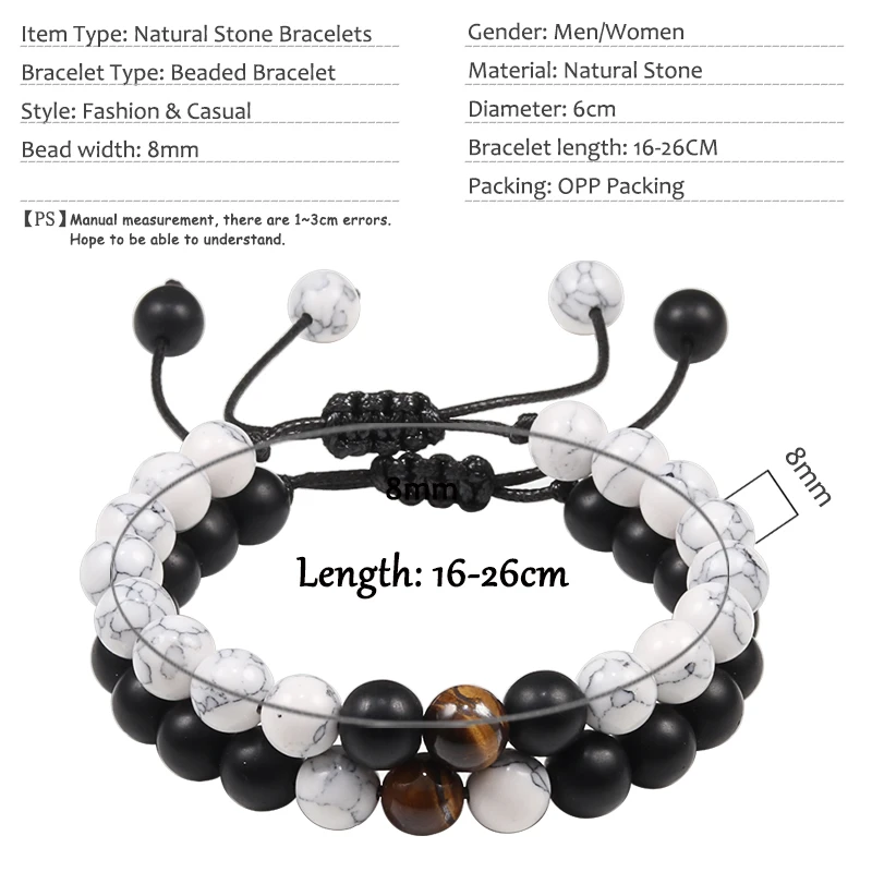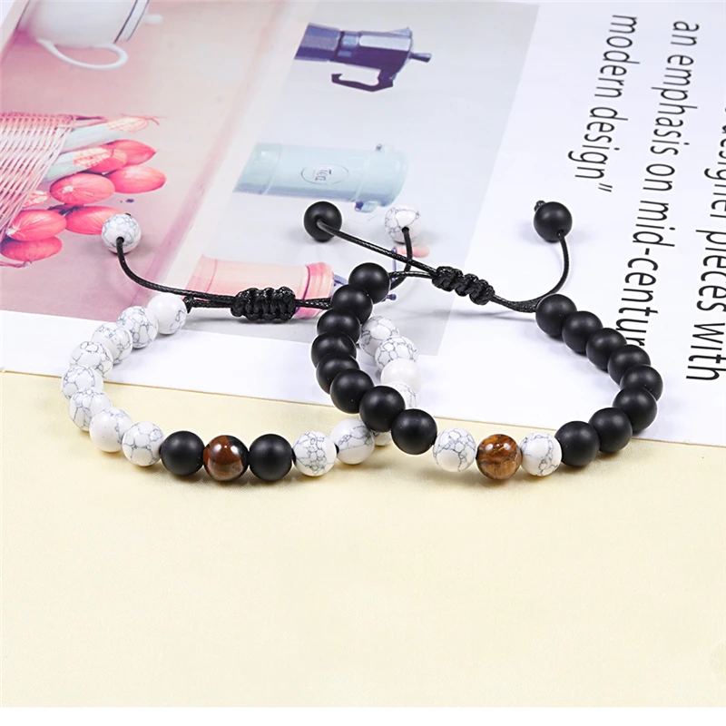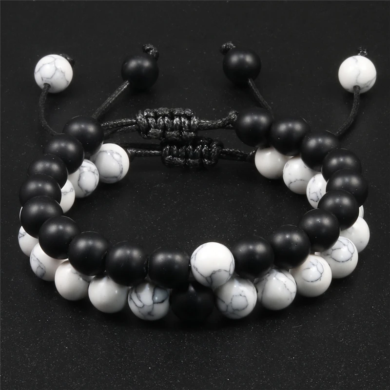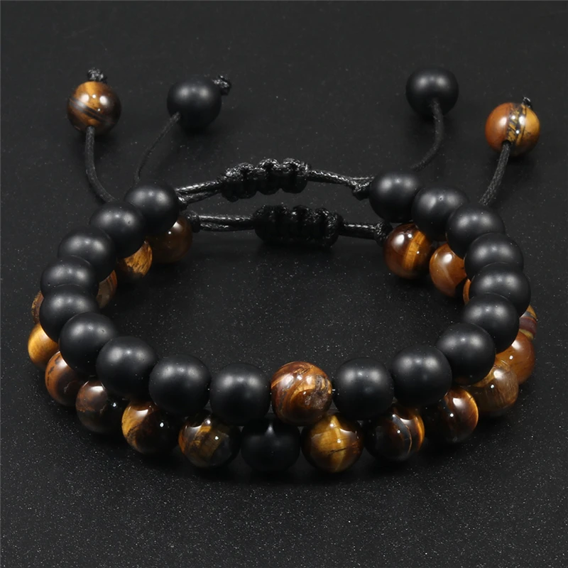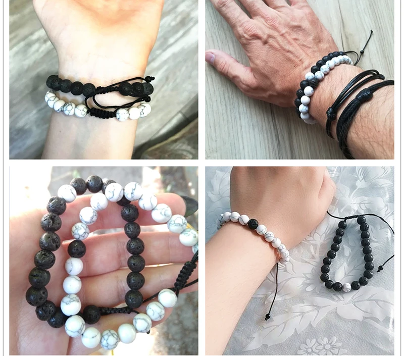 Плетеный браслет из натурального камня YingYang, 2 шт.компл., мужской браслет с бусинами из лавы, браслеты для йоги