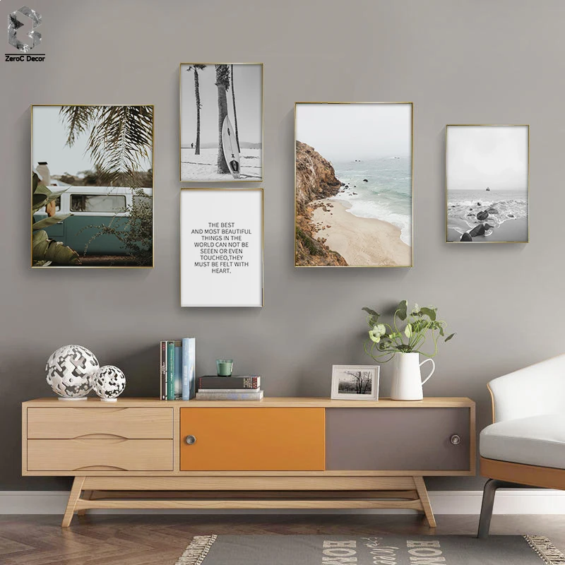 Скандинавский дорожный морской пейзаж, пляжный холст, настенный художественный плакат, автобусная цитата, скандинавский принт, живопись, природа, фотографии, современный Декор для дома