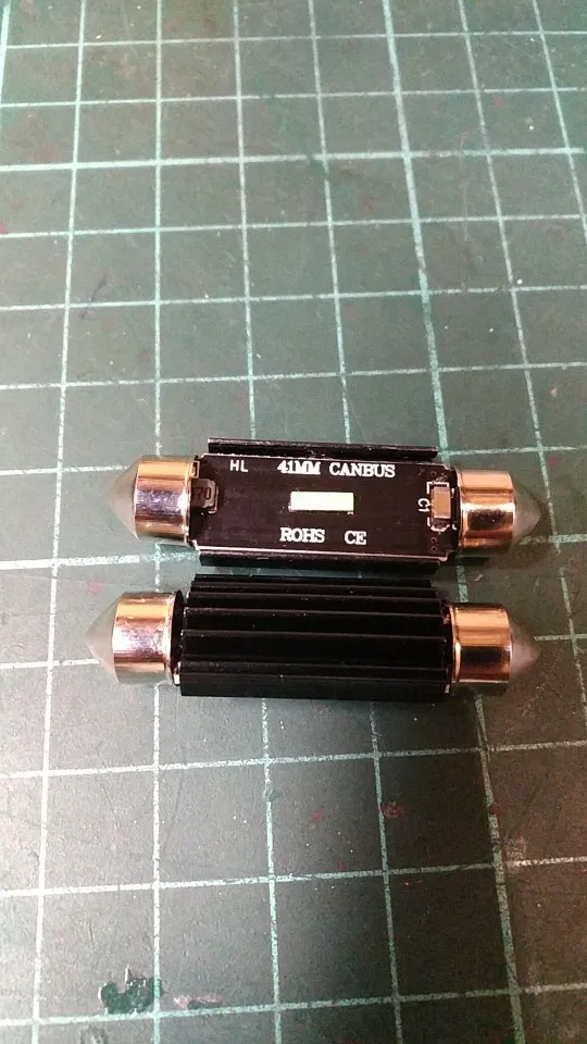 Товар доставили за 2 недели. По яркости соответствует описанию. Светит ооочень ярко, сравнение с другой, тоже яркой, лампой на 3 фото. Лампа потребляет ток 200 мА, наверно по этому резисторы для нагрузки CANBUS у меня установлены не были. При таком токе лампа значительно нагревается. Чтобы ток уменьшить, а заодно и нагрев, нужно увеличить сопротивление резистора в стабилизаторе тока под цоколем лампы (там он один). Так как цоколи припаяны к плате со стороны радиатора то придется радиатор снять, иначе не подлезть. Приклеен радиатор на герметик ( а должен быть приклеен на теплопроводящий клей). При замене резистора (стоит 0.91 Ом) на 2 Ом ток лампы уменьшиться до 70 мА. Яркость в этом случае уменьшиться незначительно а нагрев будет заметно ниже. В общем товар заслуживает внимания, да и продавец не подвел.