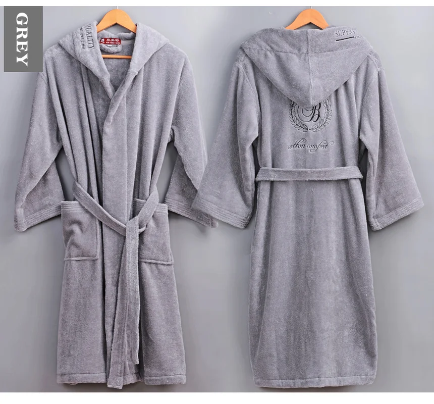 Зимний хлопковый мужской Халат с капюшоном, толстый теплый халат для мужчин, домашний халат для отеля, свадьбы, подружки невесты, серый, высокое качество