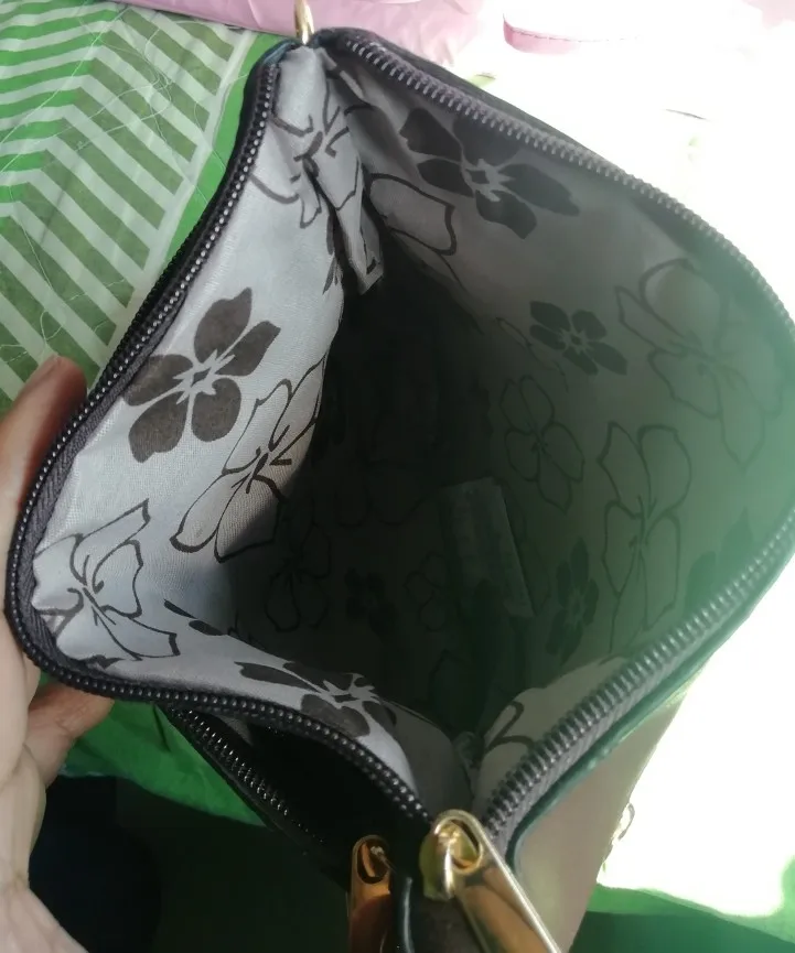 Запах довольно резкий от сумки. Продавец положил резинку для волос в подарок. Молнии рабочие. В целом неплохо.