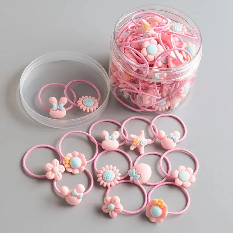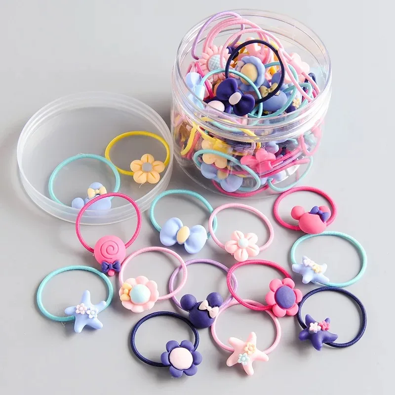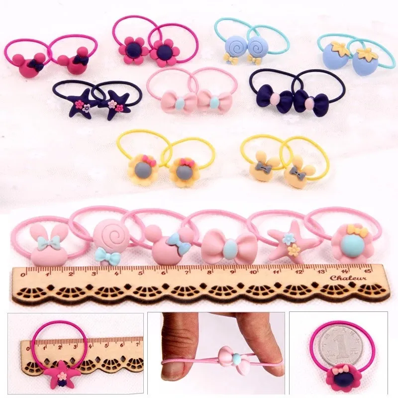 40 шт.лот, модные резинки для волос с милым мультяшным рисунком, аксессуары для волос для девочек, детские резинки для волос с бантом в виде цветов, резинки для волос