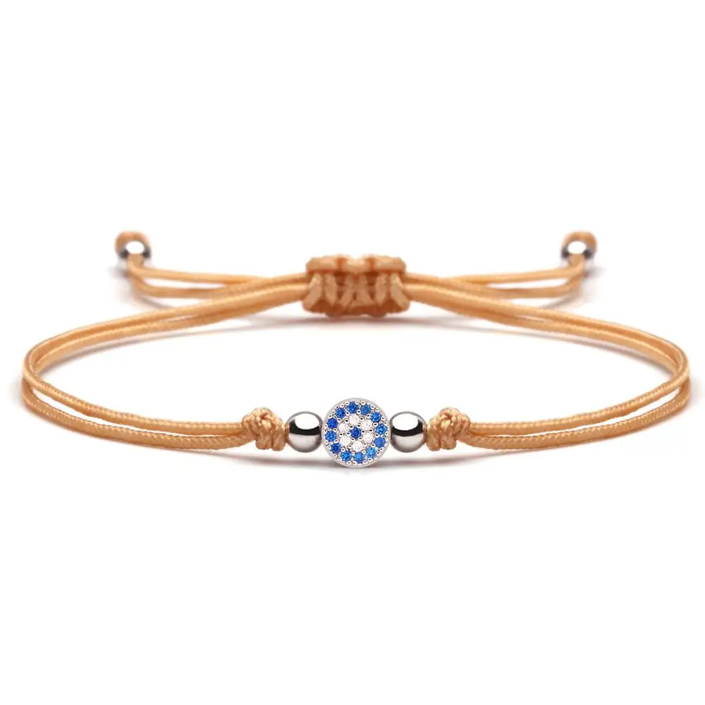 Браслет с шармами сглаза для мужчин и женщин, медный плетеный браслет с белым кубическим цирконием, греческий глаз, голубой, розовый, черный цвет