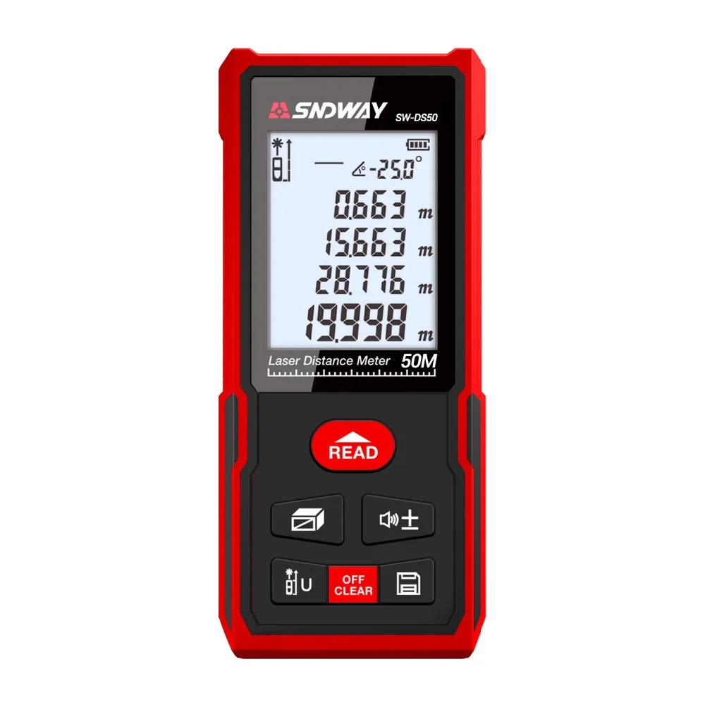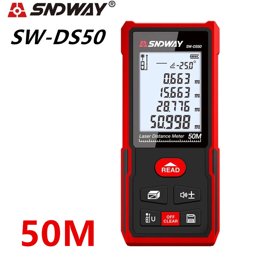 Цифровой лазерный дальномер SNDWAY, 120 м, 100 м, 70 м, 50 м, лазерный дальномер, дальномер, измерительная лента, инструменты, Электронная угловая линейка