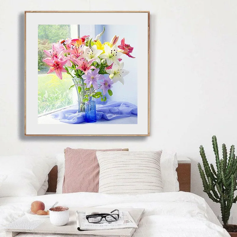 Купила 20*20. Очень маленькая картинка. Слишком много оттенков. Контуры цветов расплываются. Нет чёткости. Получилось разноцветные расплывчатое пятно